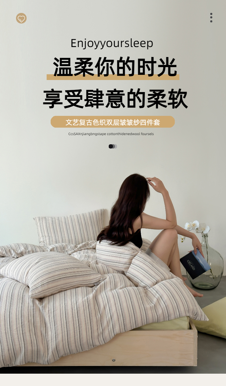 (总)玛奇朵 2025秋冬新品韩国色织A类三层皱皱纱系列四件套,山屿,时序,巷往