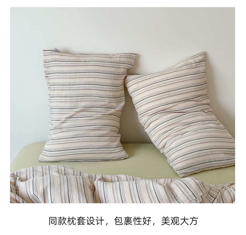 (总)玛奇朵 2025新款棉麻色织条纹系列四件套-南坪晚风,南坪晚风-粉色床单,南坪晚风-咖色床单