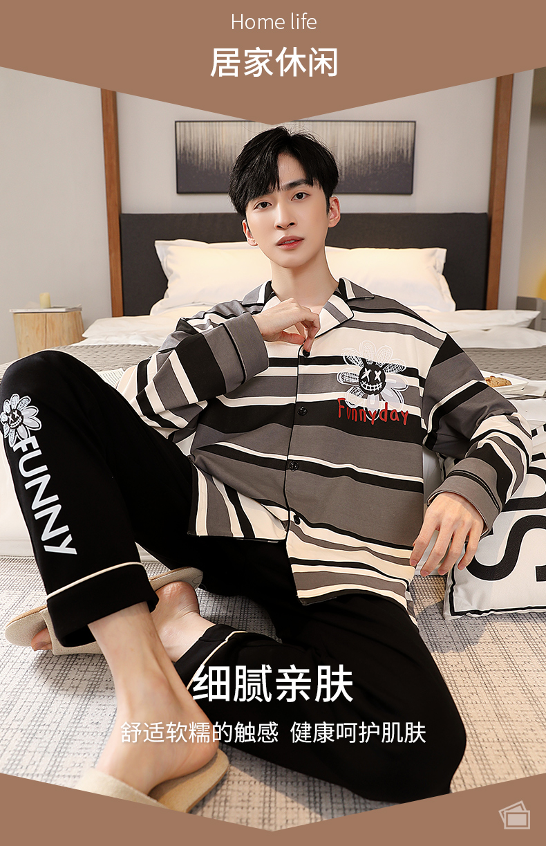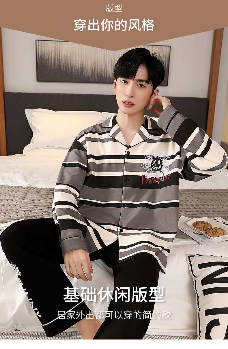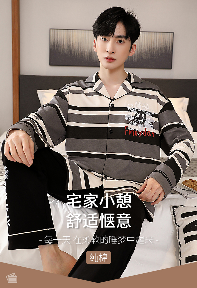 商品名称:洛兰沙 春秋季纯棉开衫长袖可外穿家居服睡衣 641男