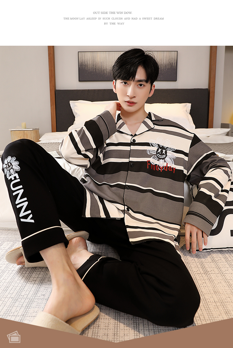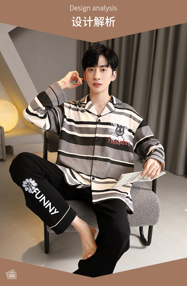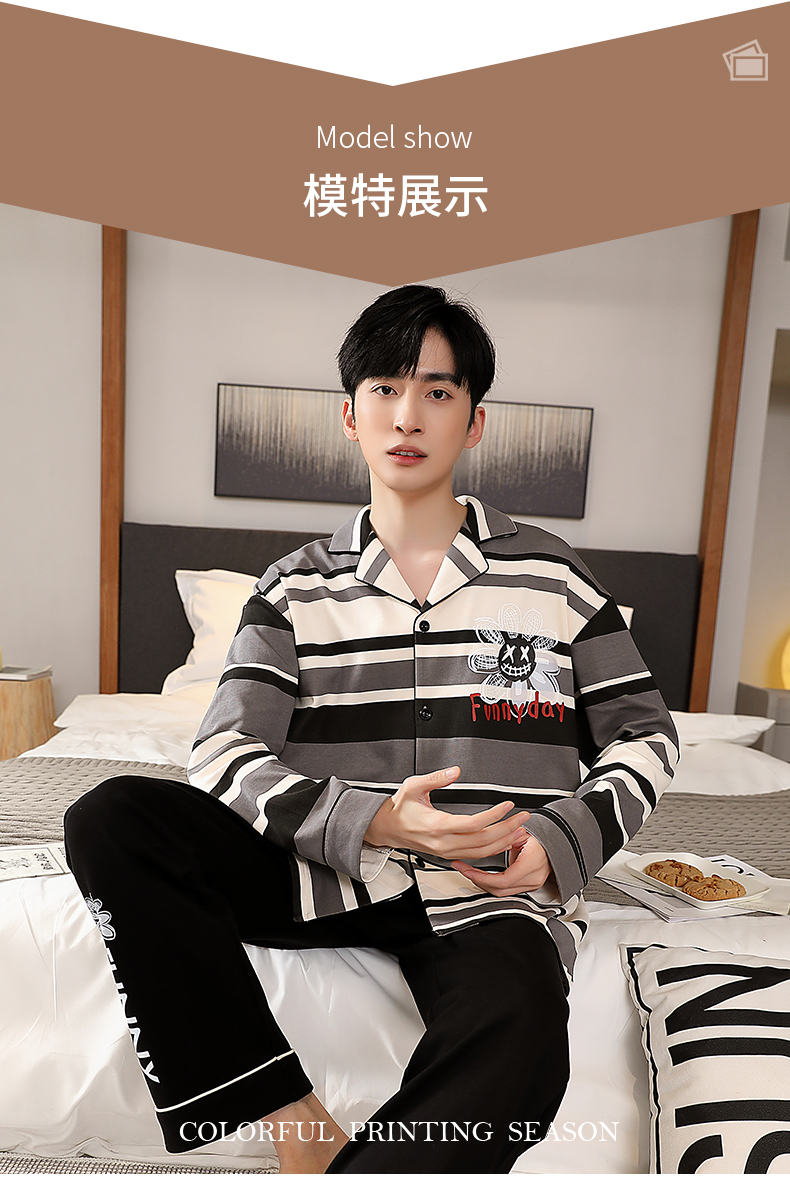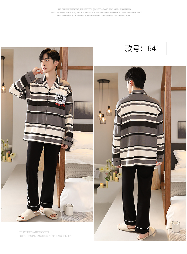 商品名称:洛兰沙 春秋季纯棉开衫长袖可外穿家居服睡衣 641男