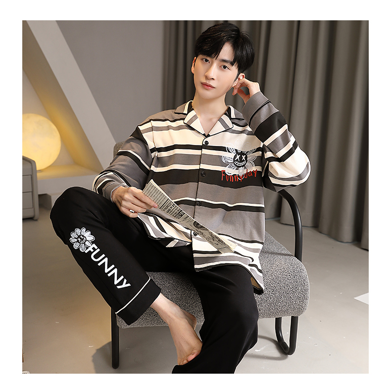 洛兰沙 春秋季纯棉开衫长袖可外穿家居服睡衣 641男