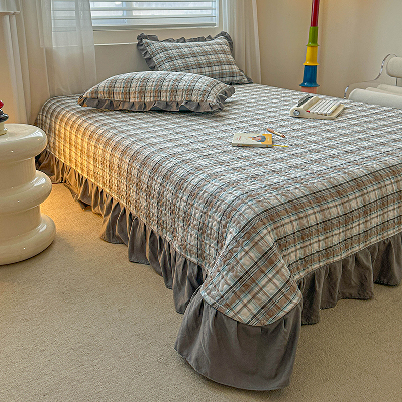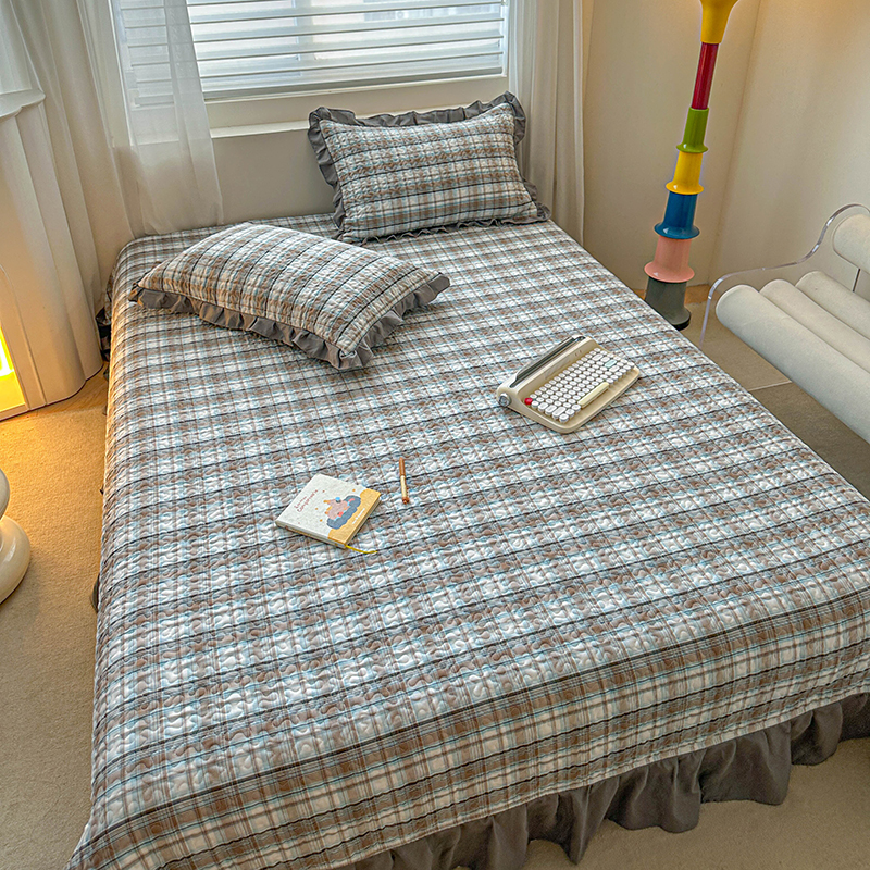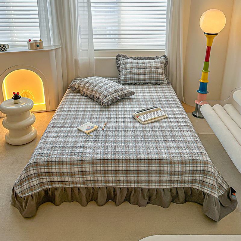 源舜 新款色织水洗夹棉床盖三件套学生三件套直播爆款 灰咖格