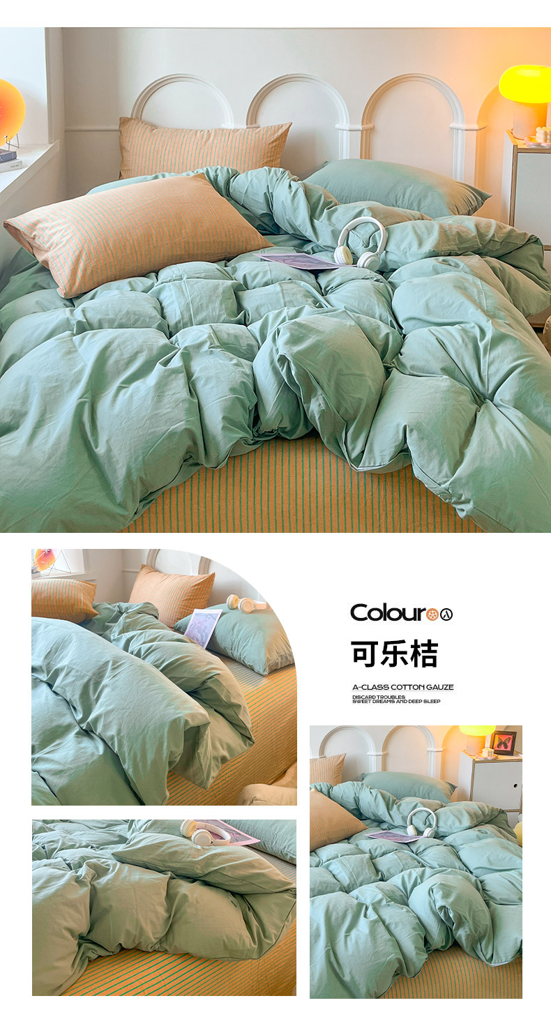 商品名称:千朵 2024新款ins风多巴胺撞色条纹全棉水洗棉四件套-可乐系列 可乐桔