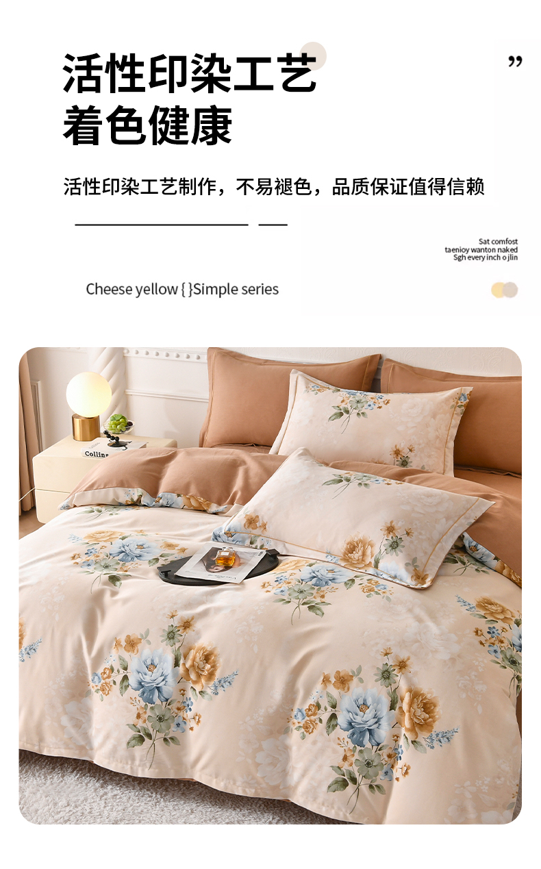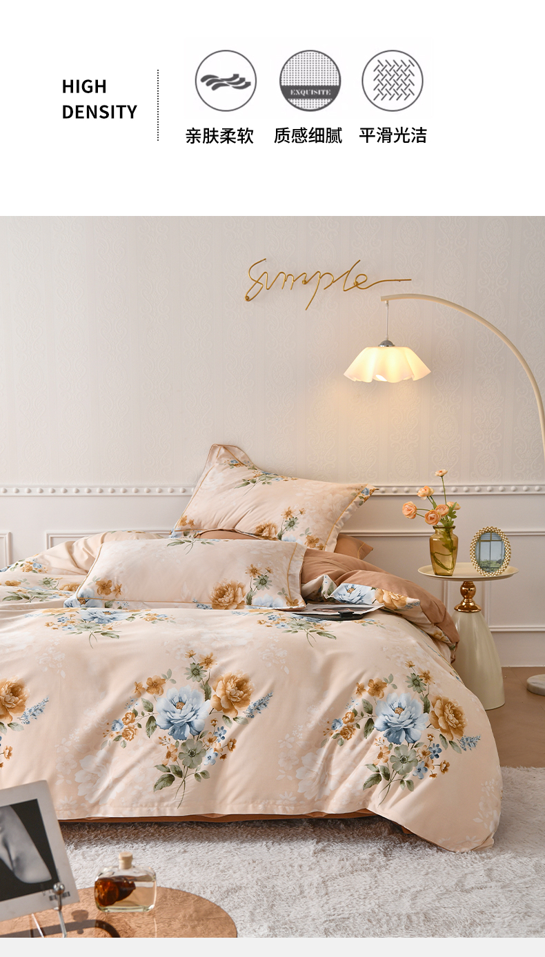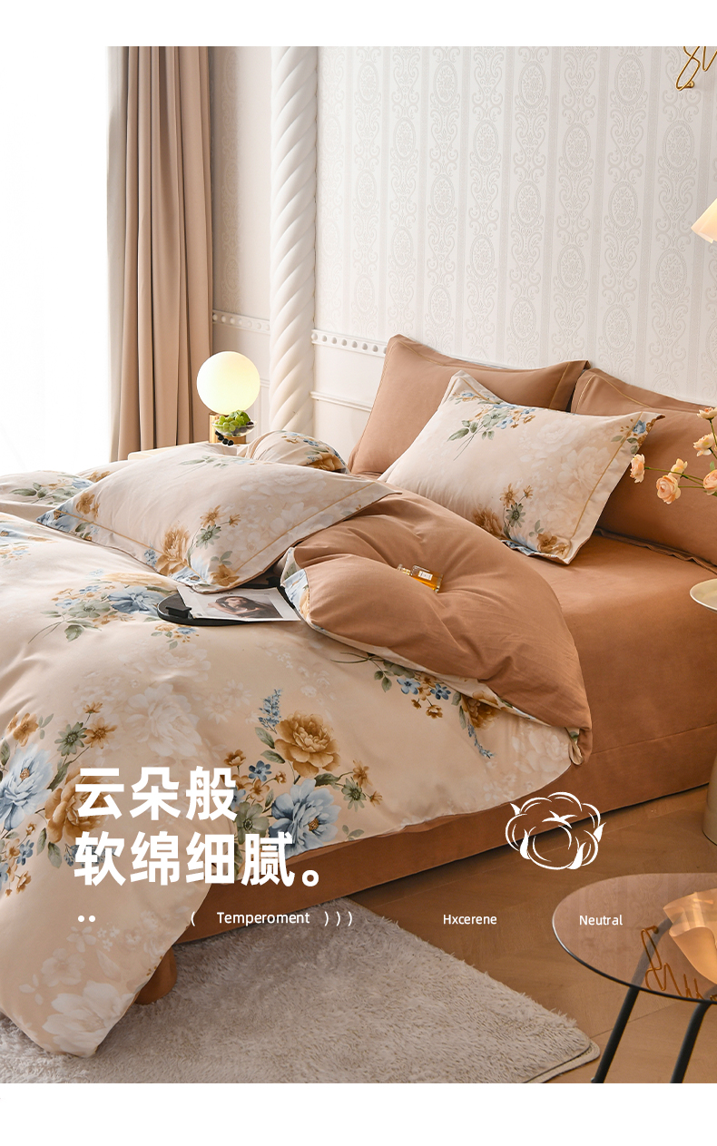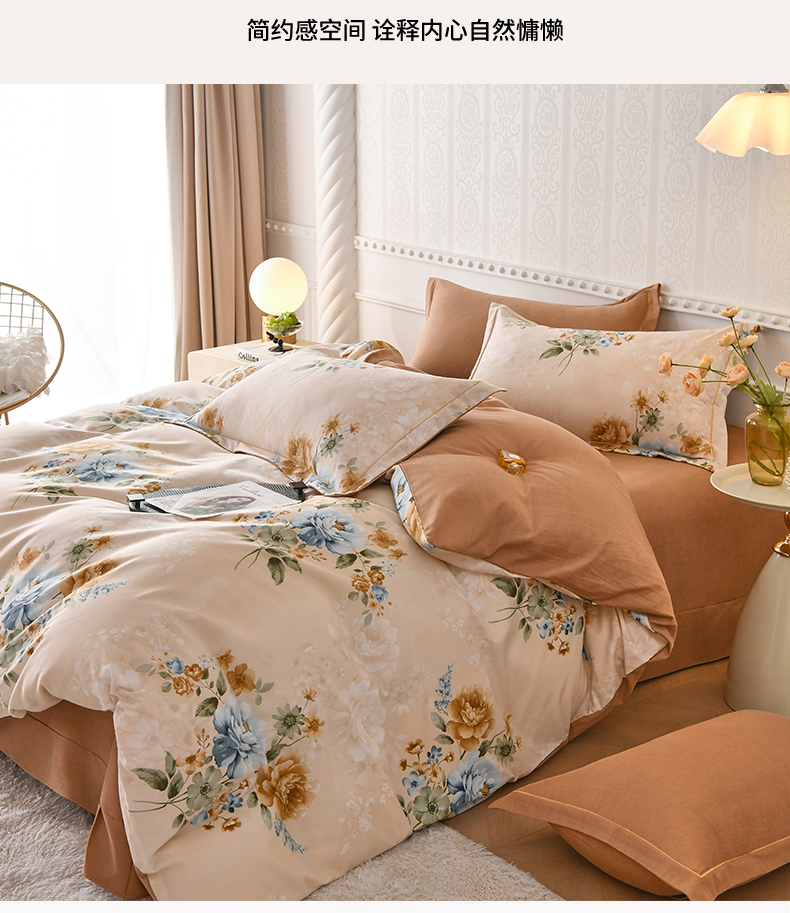 当前位置: 91家纺网 > 商品网购 > 床品套件 > 四件套 > 全棉普通四件套 > 优尚家纺 2025新款全棉磨毛纯棉喷气印花清新轻奢款四件套 轻奢款-雅韵金蕊