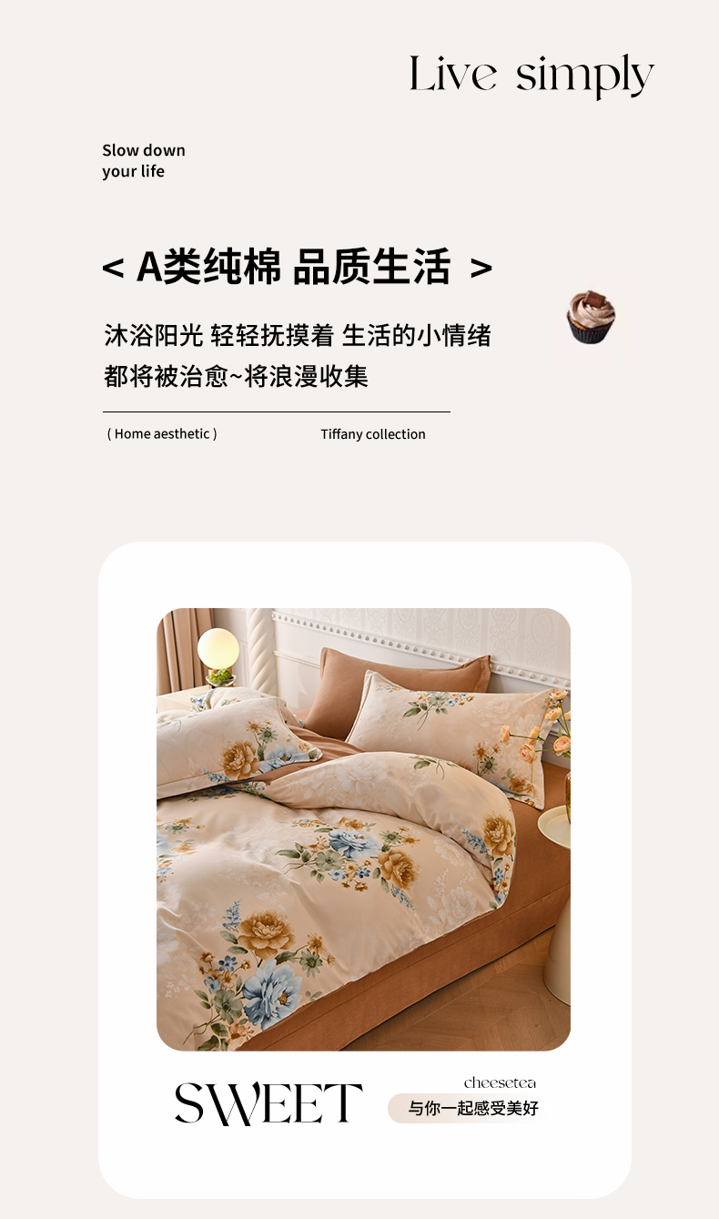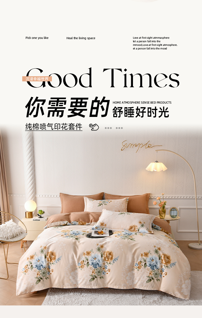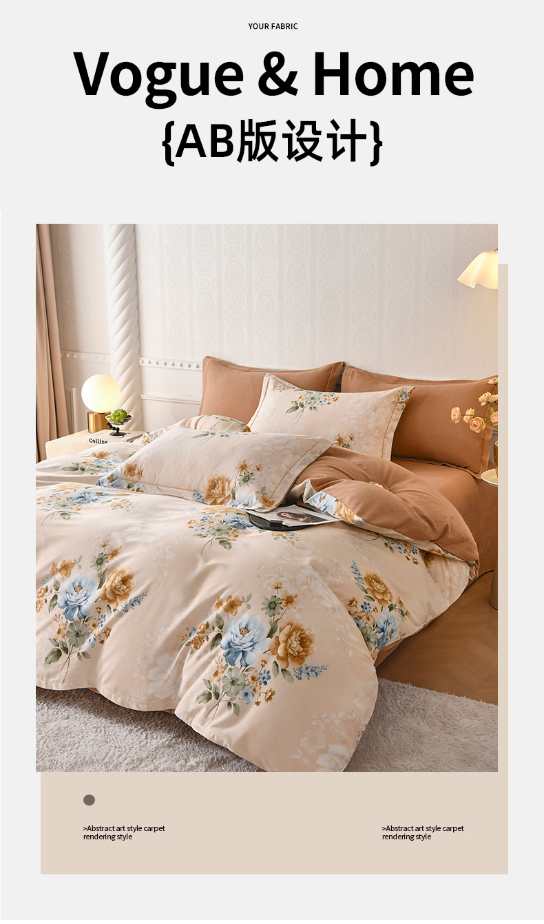 当前位置: 91家纺网 > 商品网购 > 床品套件 > 四件套 > 全棉普通四件套 > 优尚家纺 2025新款全棉磨毛纯棉喷气印花清新轻奢款四件套 轻奢款-雅韵金蕊