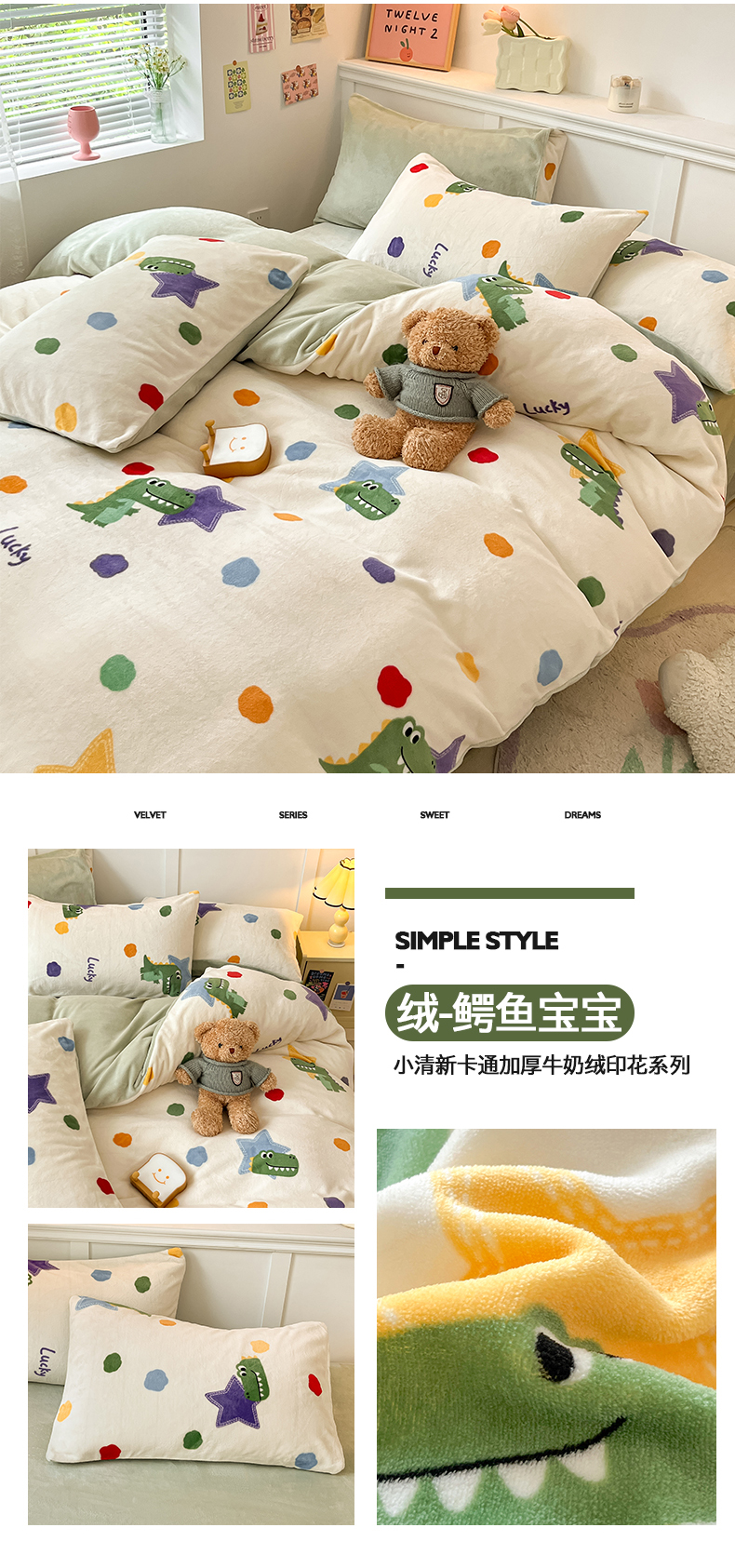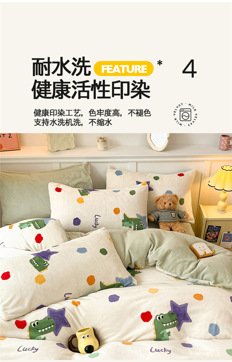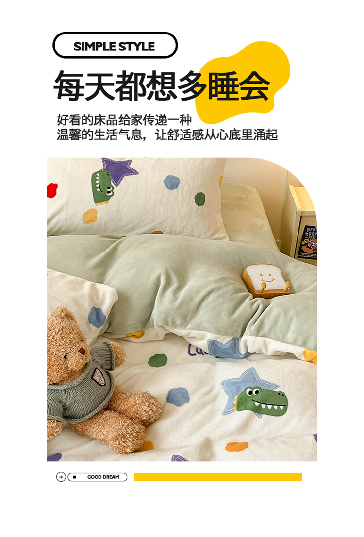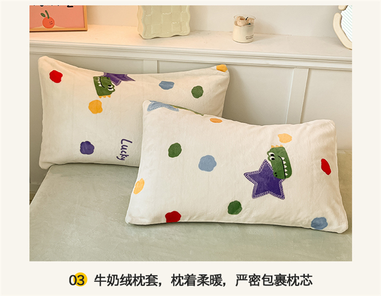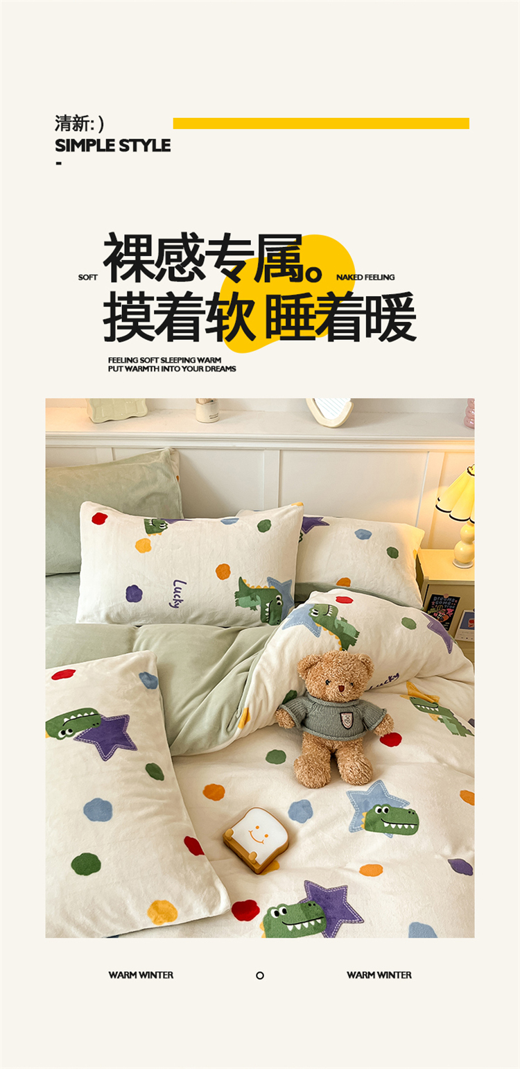商品名称:2024新款200g加厚防静电牛奶绒小清新四件套 绒-鳄鱼宝宝