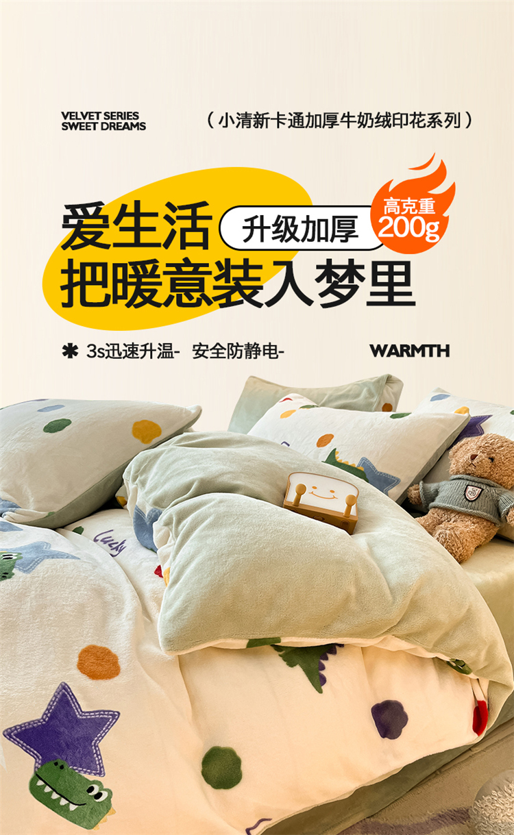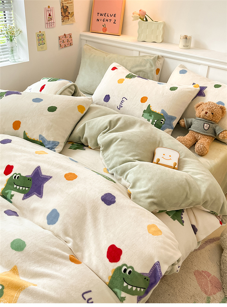 2024新款200g加厚防静电牛奶绒小清新四件套 绒-鳄鱼宝宝