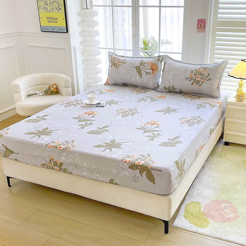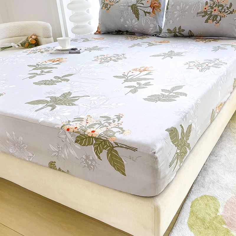 梵巢家纺 芦荟棉床笠单床笠,外贸跨境单床笠磨毛床笠印花床笠床笠三件套浅浅花香