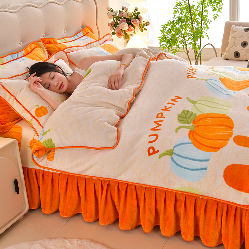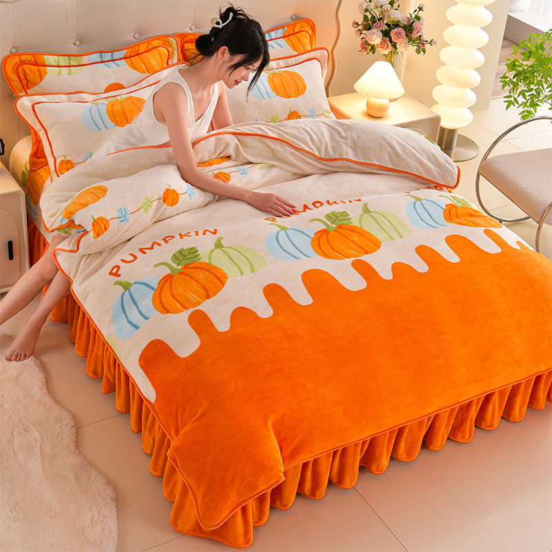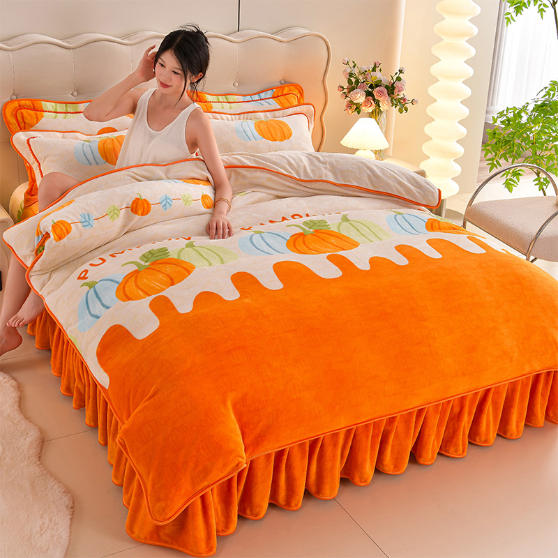 梦莱情纺2024新款8.5斤牛奶绒四件套日产12000套 南瓜