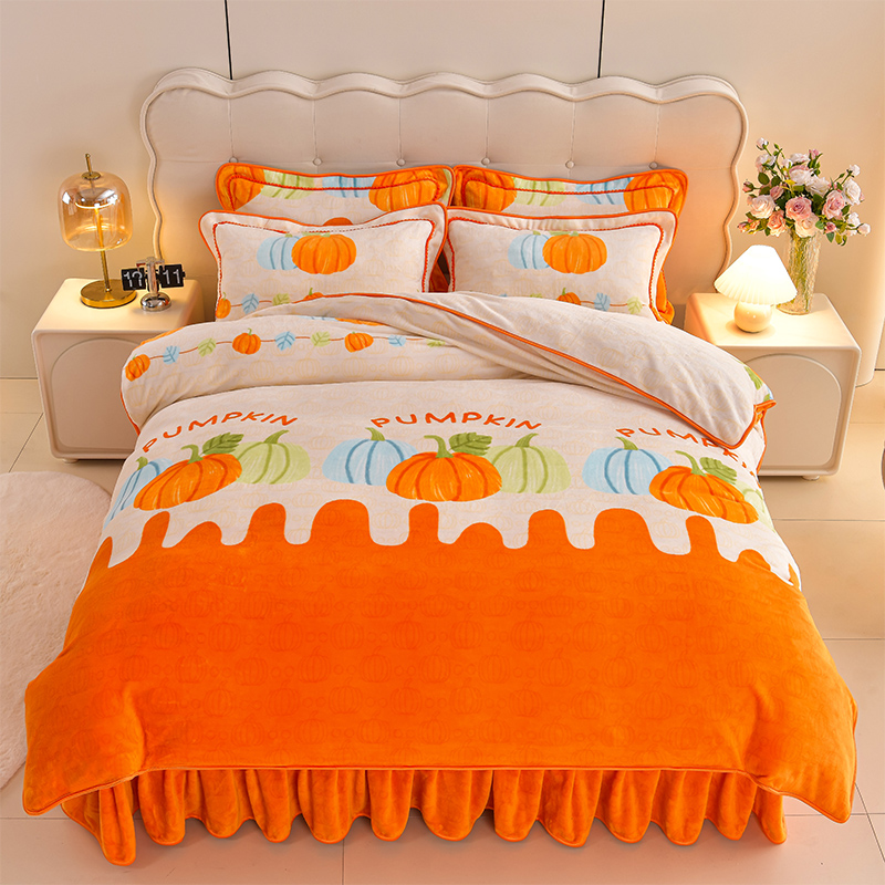 商品名称:梦莱情纺2024新款8.5斤牛奶绒四件套日产12000套 南瓜