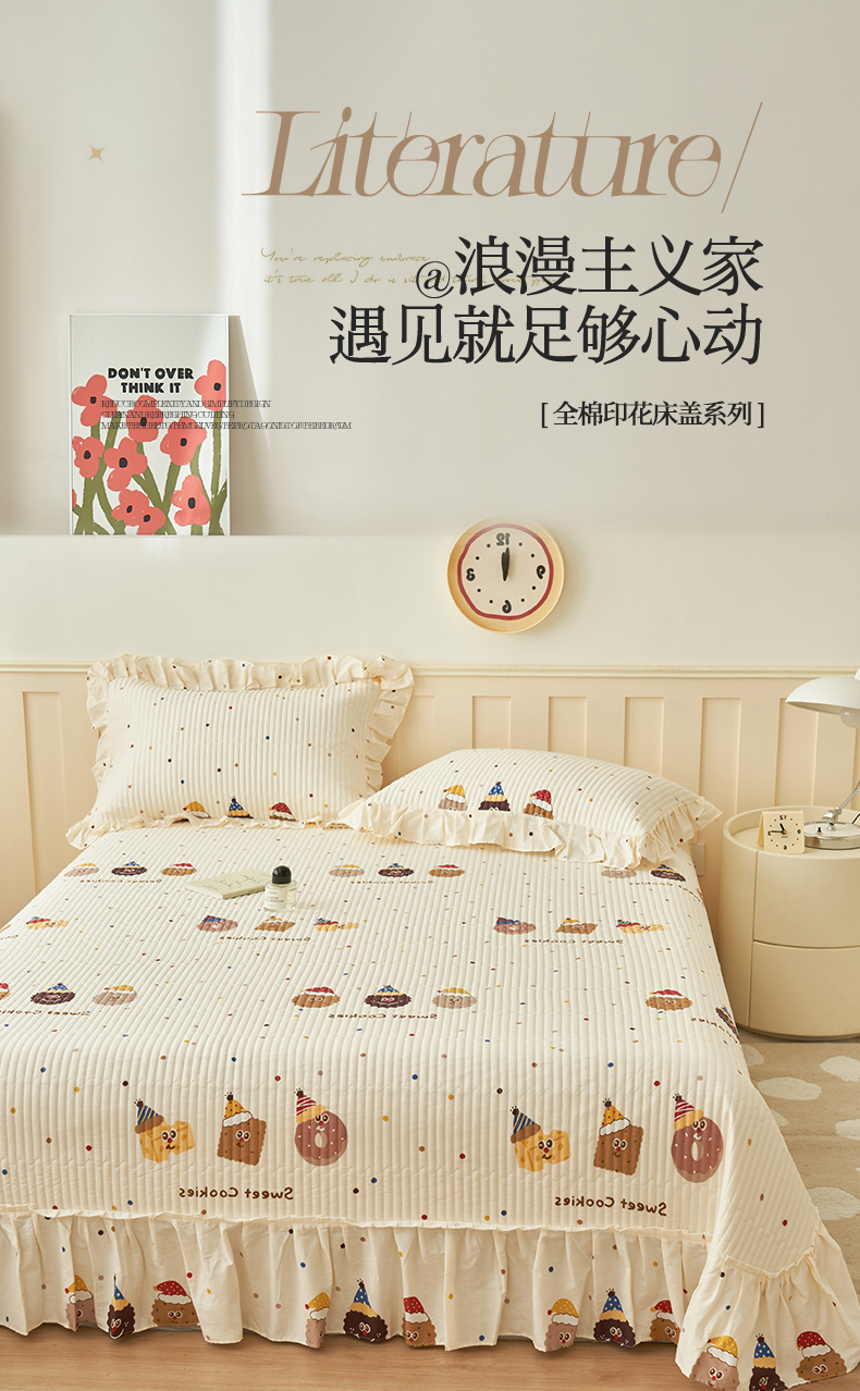 恒爱家纺 2024新款全棉甜美少女单床盖曲奇小丑