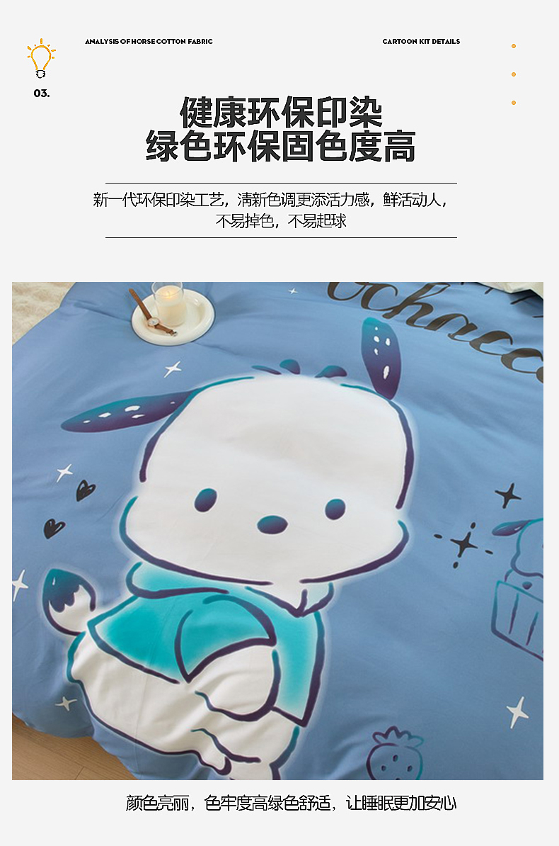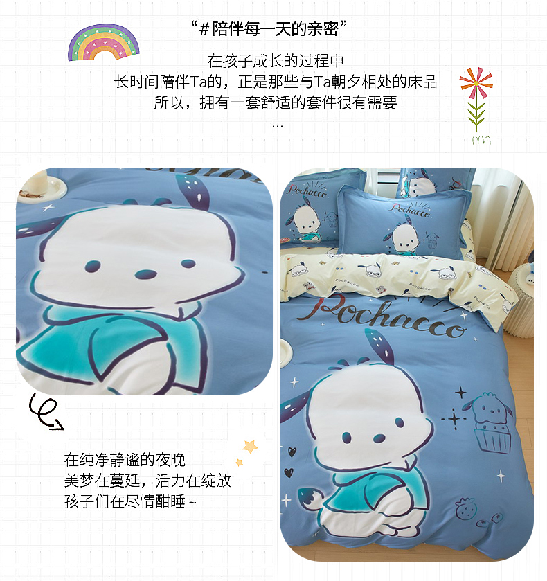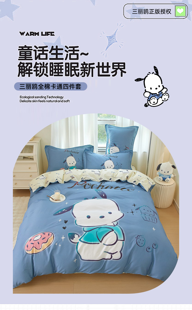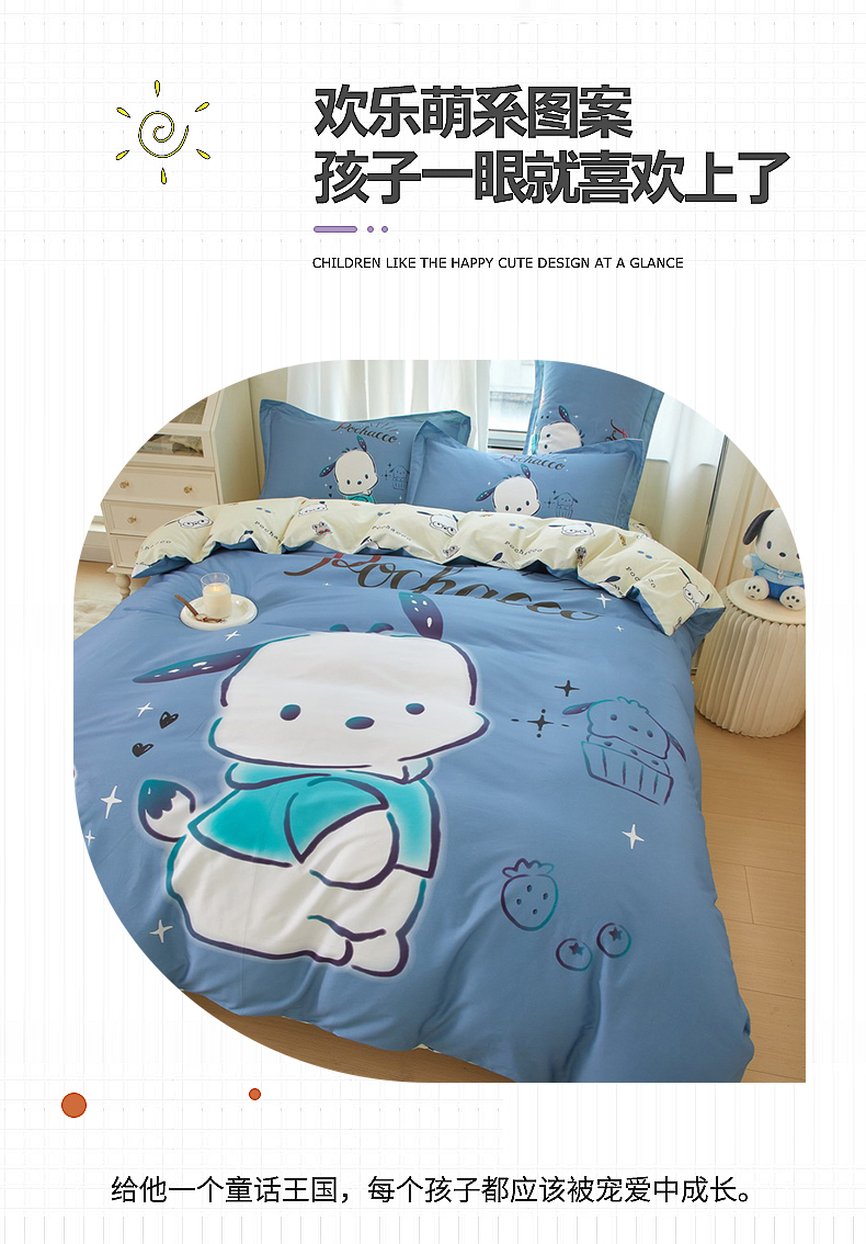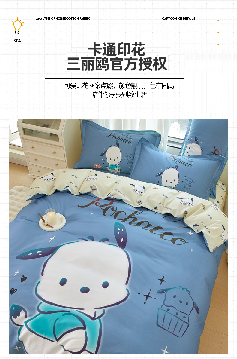 商品名称:蘭菲家纺 2024新款全棉大版卡通三丽鸥四件套 恰恰-灰