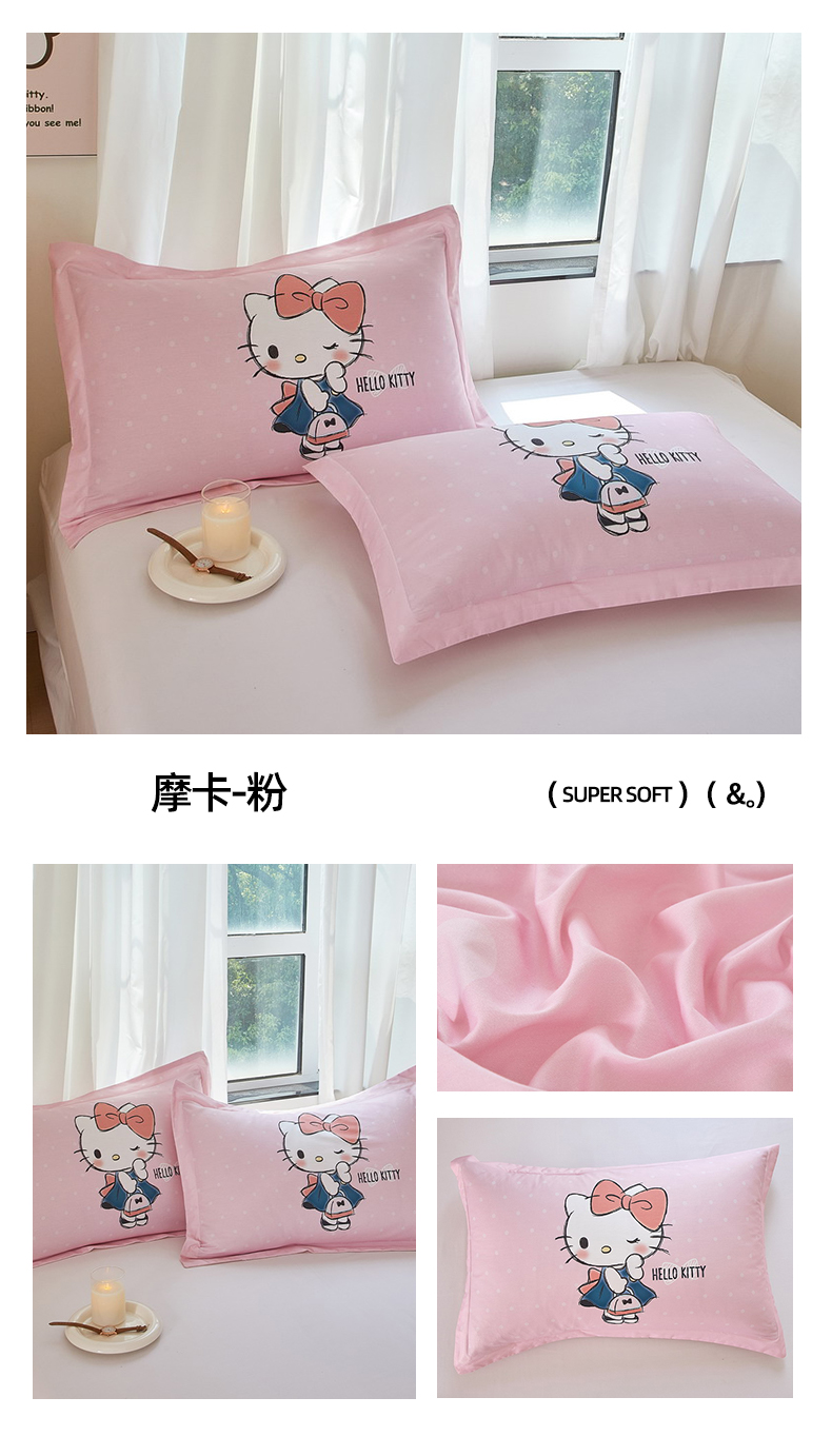 商品名称:蘭菲家纺 2024新款全棉大版卡通三丽鸥单品枕套 摩卡-粉