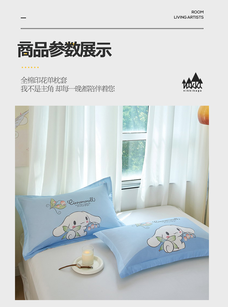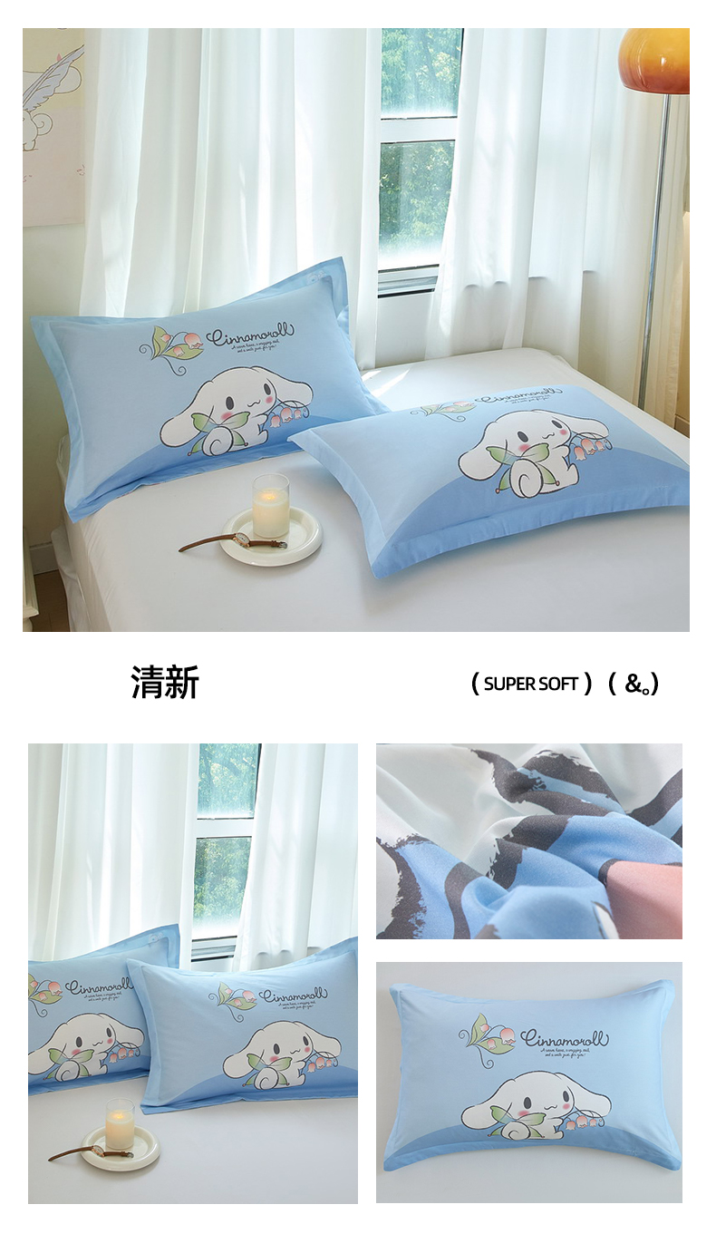 商品名称:蘭菲家纺 2024新款全棉大版卡通三丽鸥单品枕套 清新