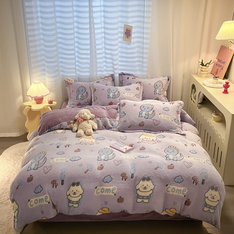 韩巢家纺 2025新款高克重印花牛奶绒床品四件套 爱丽丝,爱丽丝