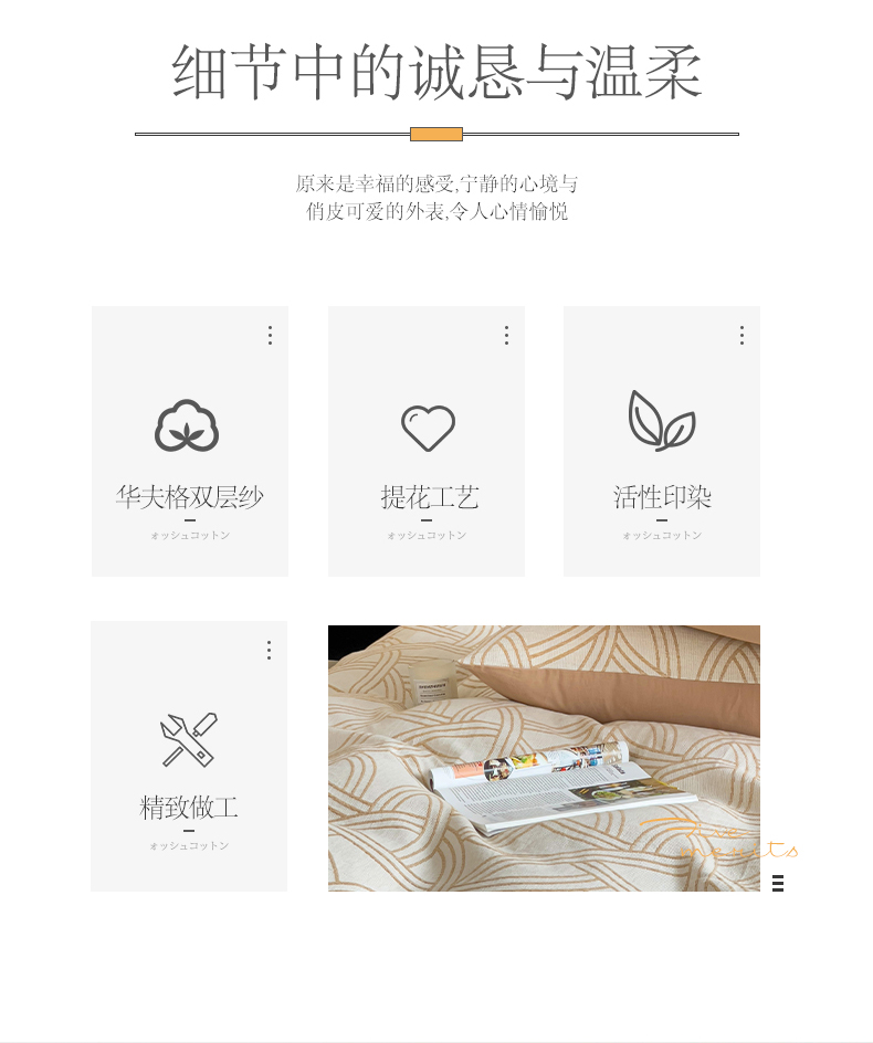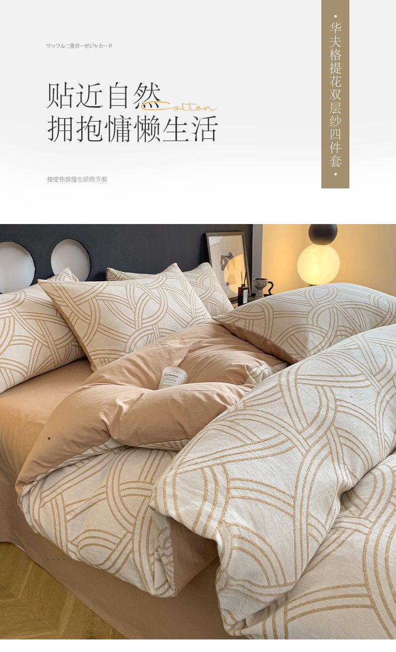 商品名称:小懒猪 2024秋冬新款全棉纯棉加厚华夫格提花双层纱四件套-梦幻系列 优雅黄