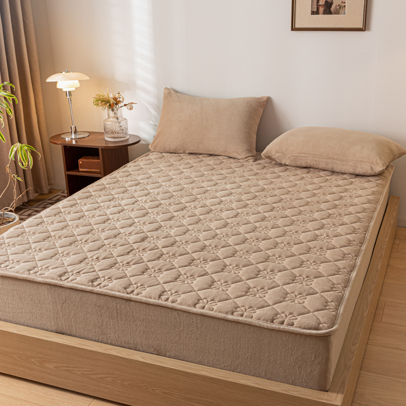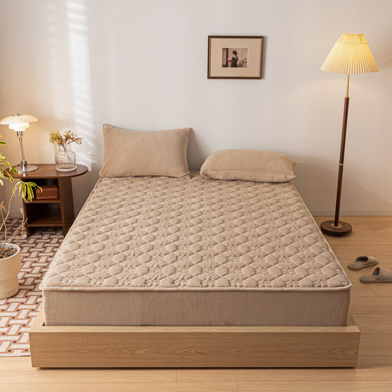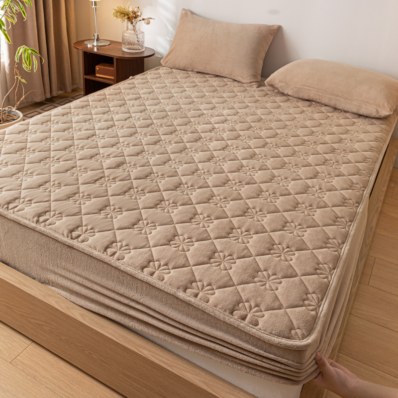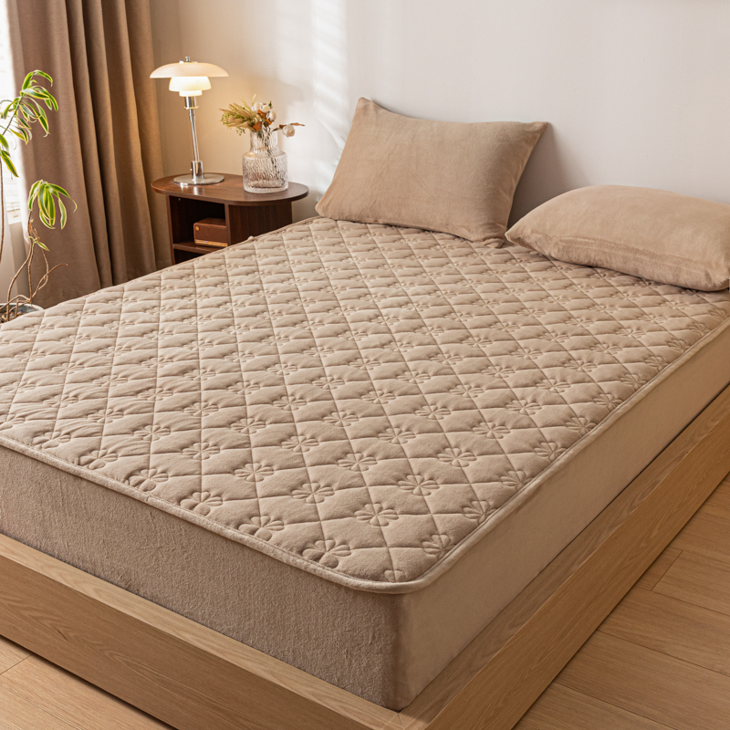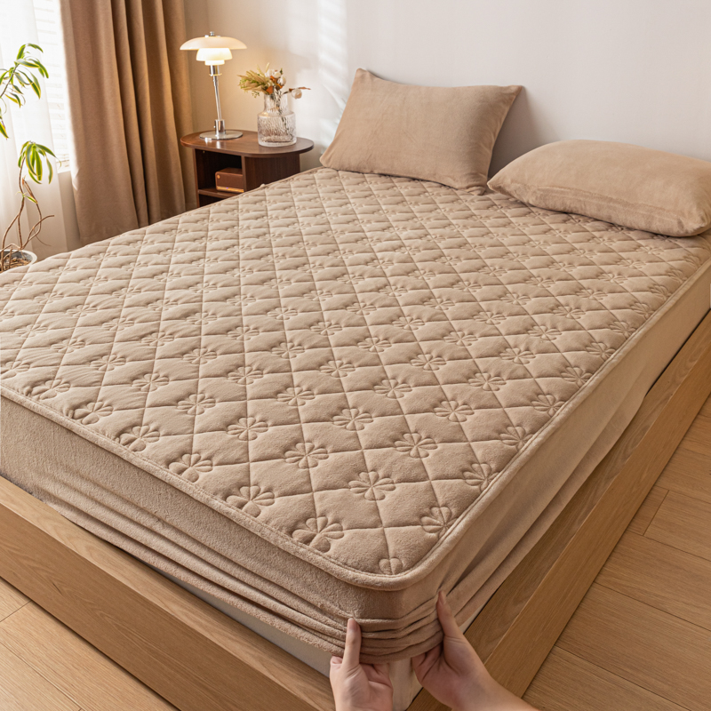 梵克保罗 2024新款牛奶绒夹棉床笠-四叶草 四叶草-奶咖