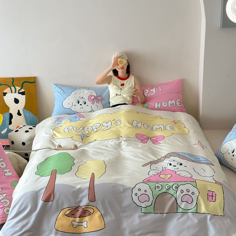 桃喜 2024新款全棉大版卡通混搭四件套 元气小狗