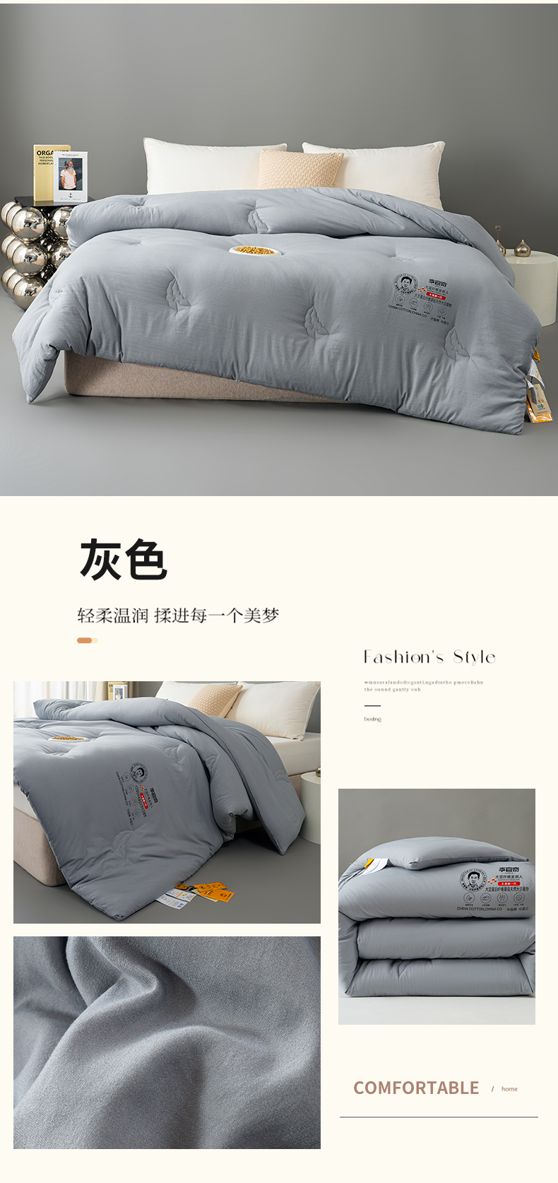 • 91家纺网 家纺一手货源 找家纺 芯恋家居 2025新款正宗李官奇速暖大豆被春秋被加厚大豆被(含包装) 灰色