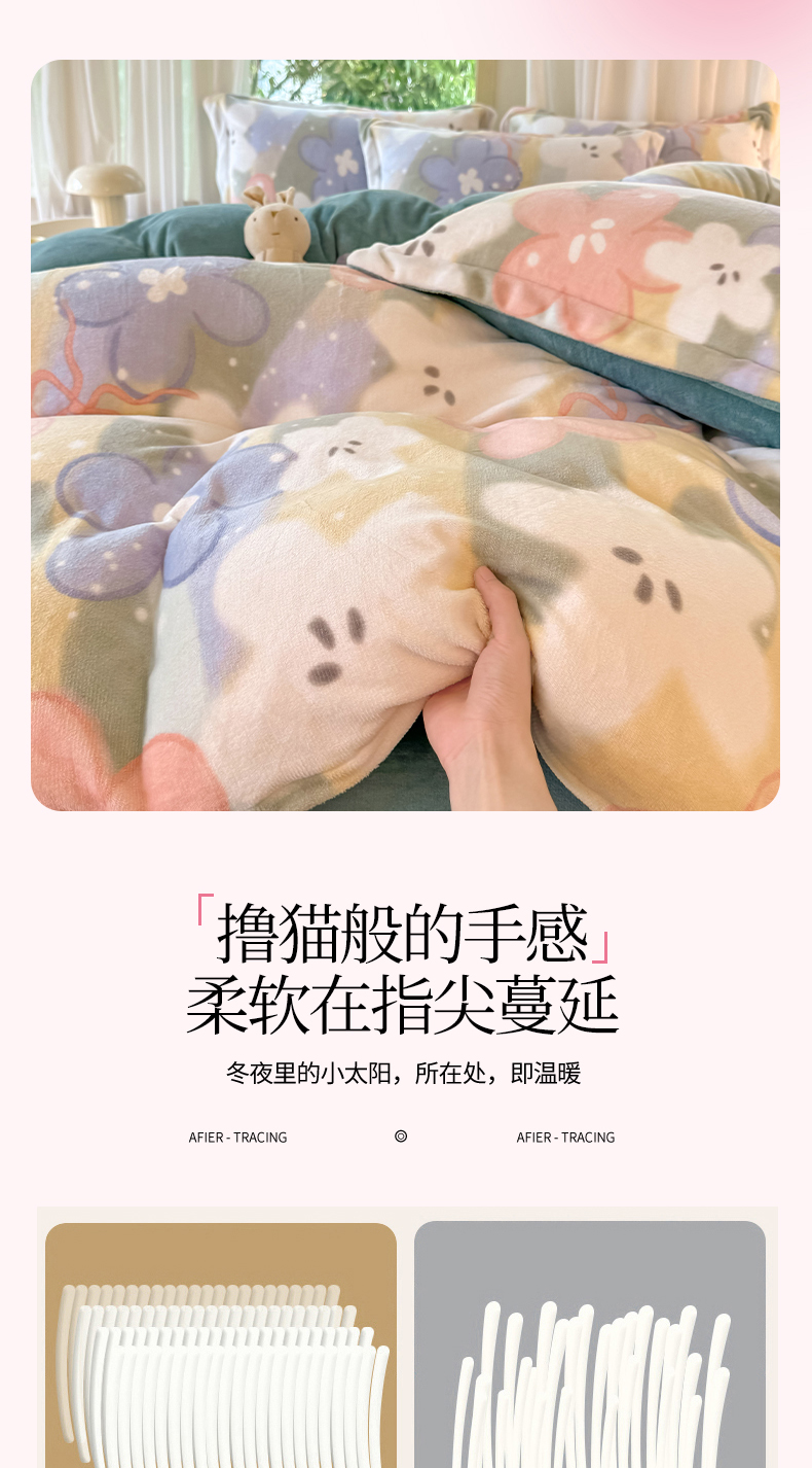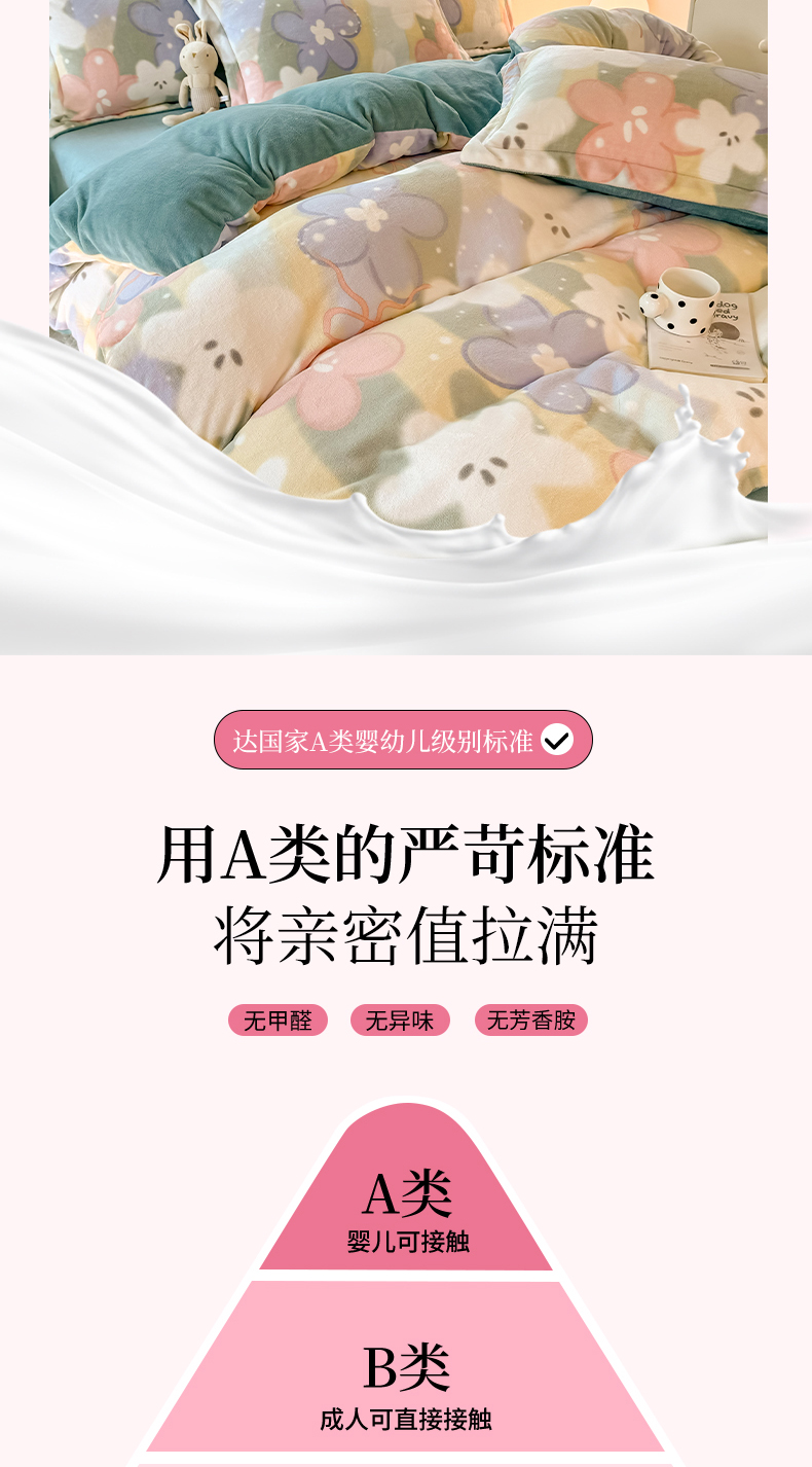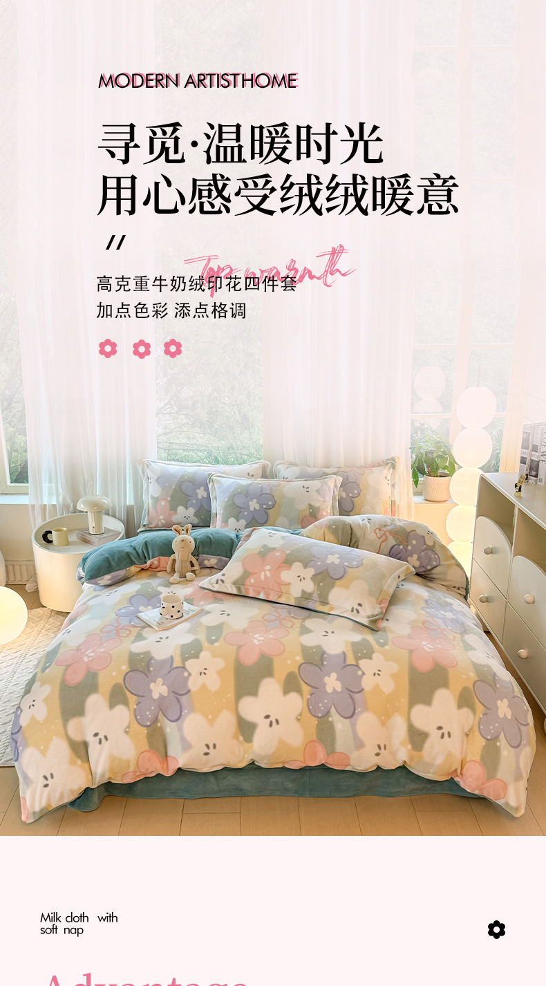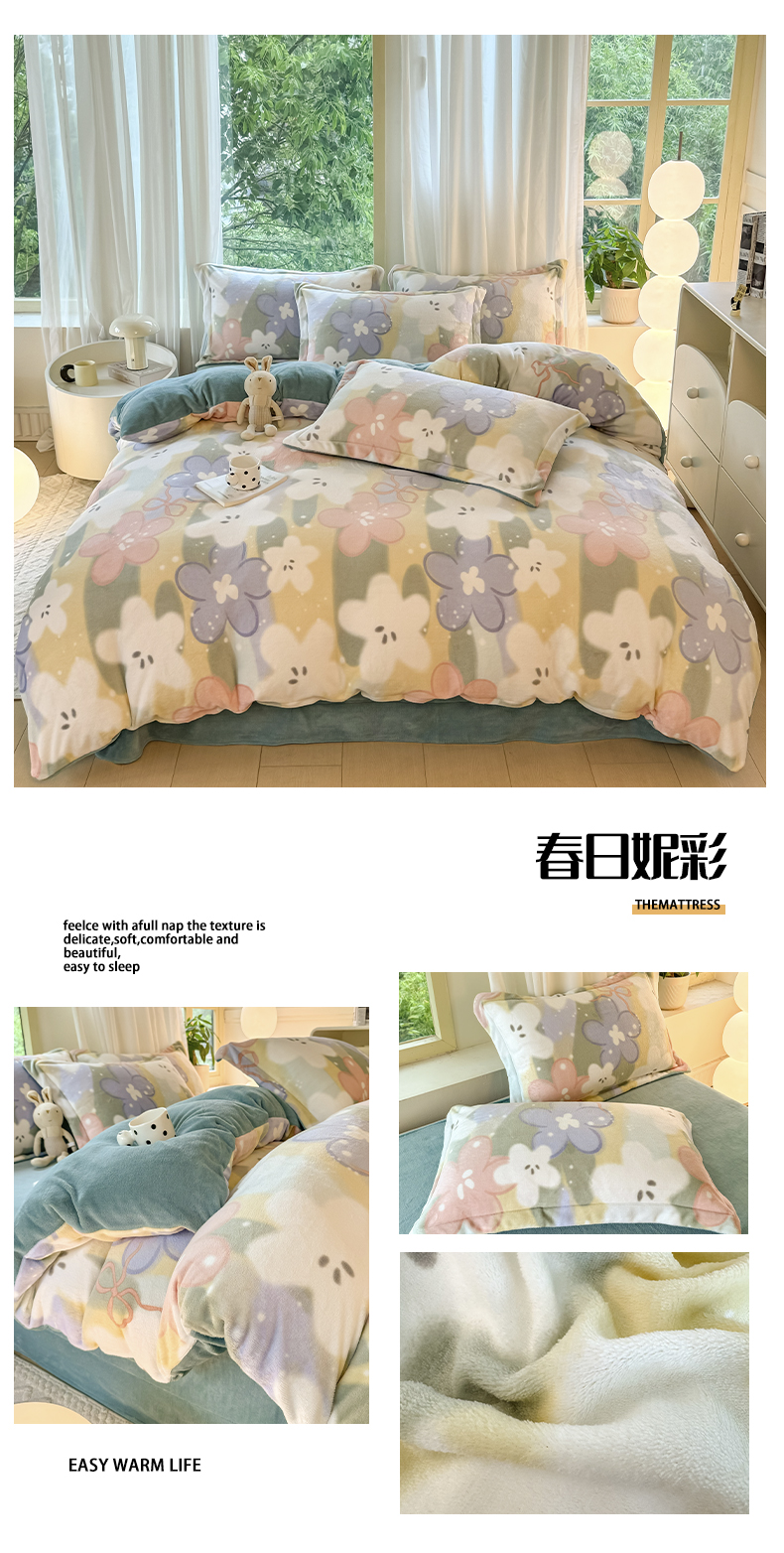 富之航家纺 2024新款高克重小清新牛奶绒四件套 春日妮彩