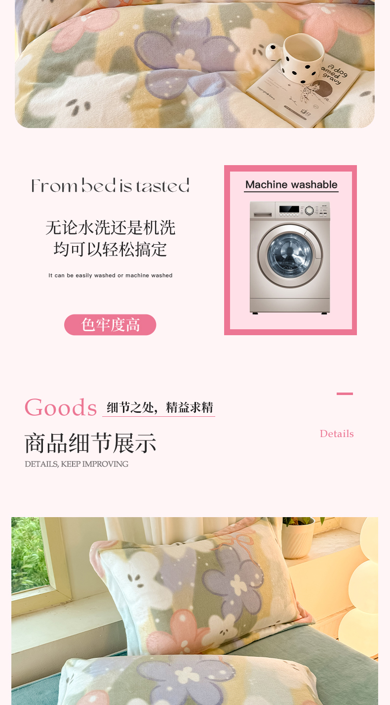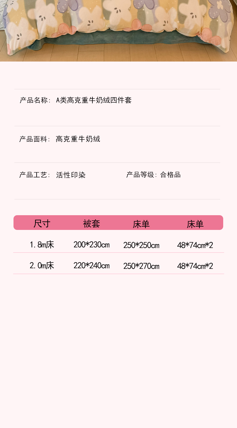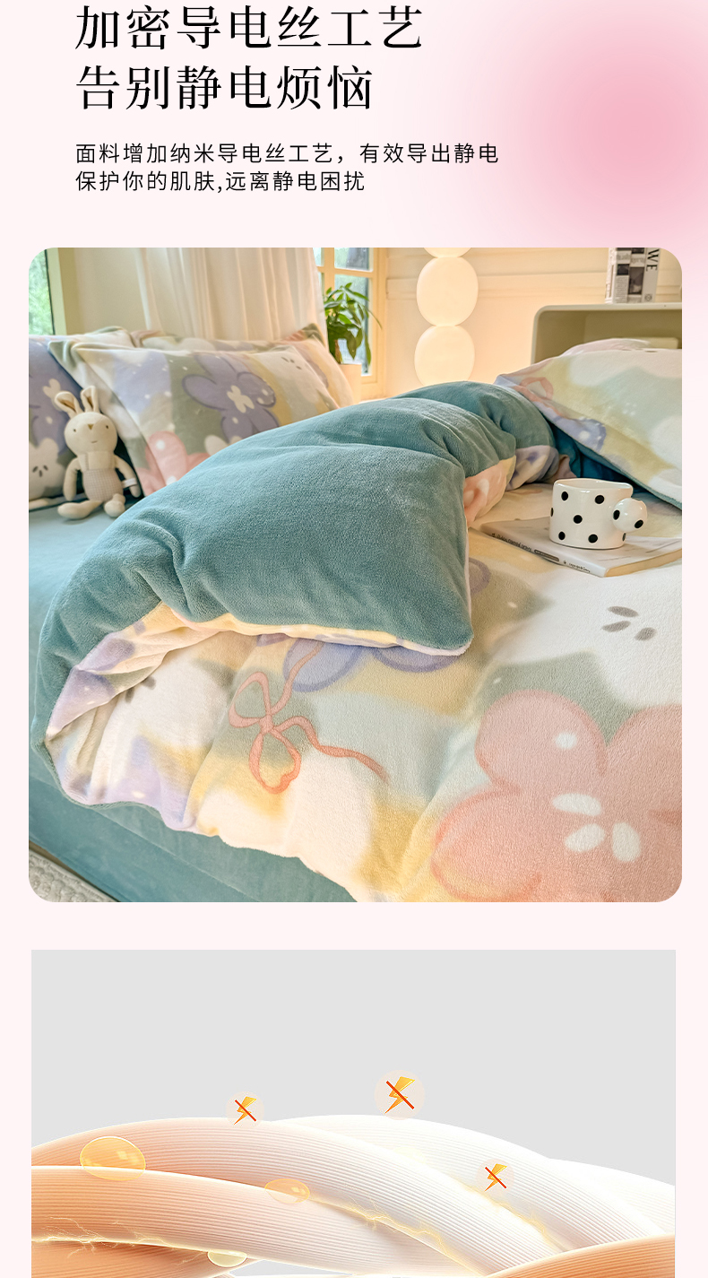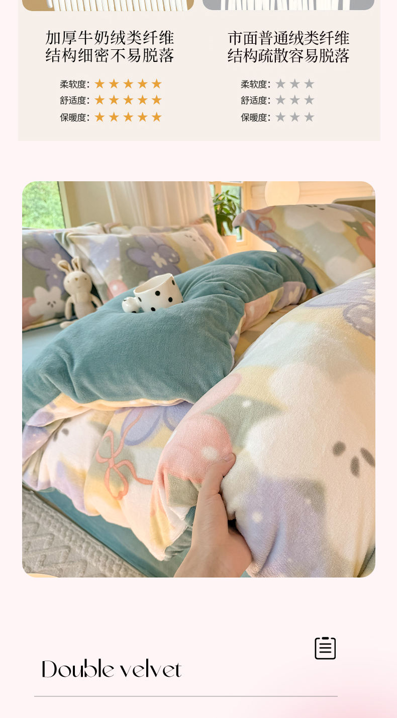 商品名称:富之航家纺 2024新款高克重小清新牛奶绒四件套 春日妮彩