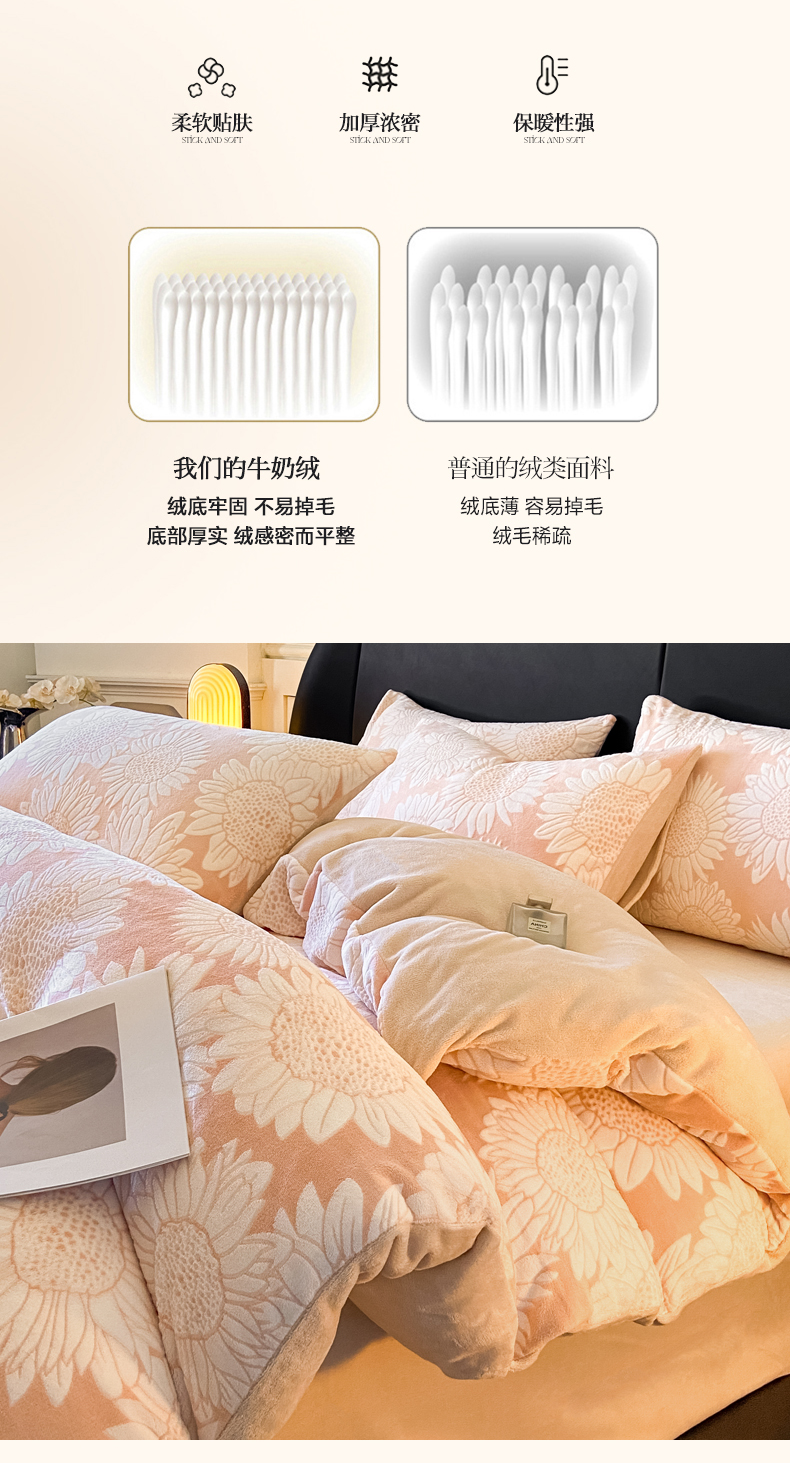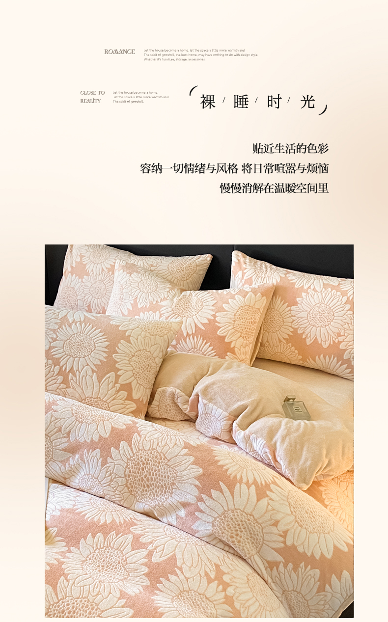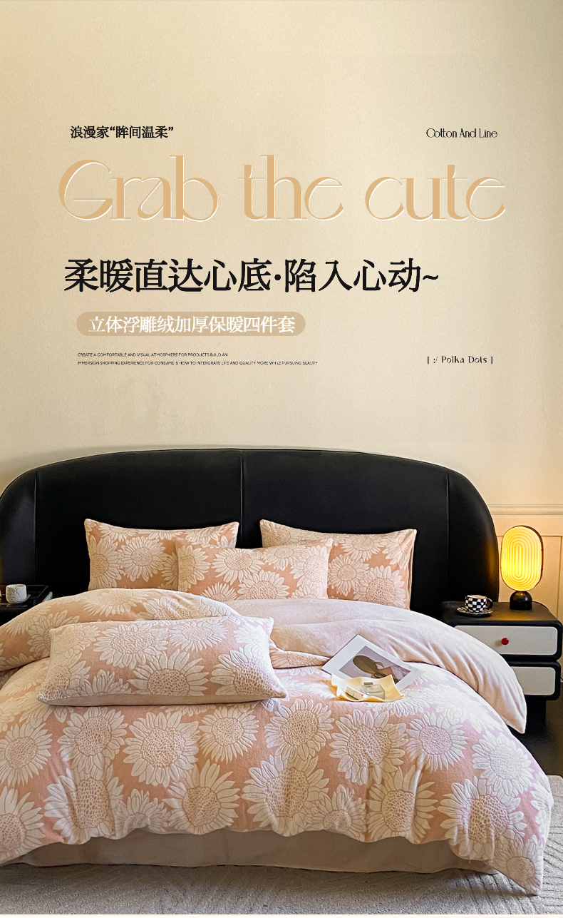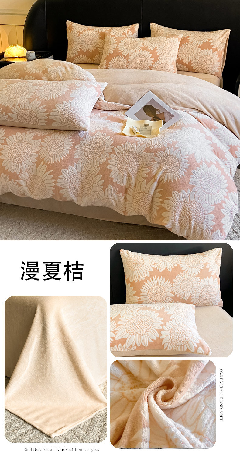 商品名称:2024新款立体浮雕保暖加厚牛奶绒四件套 漫夏桔