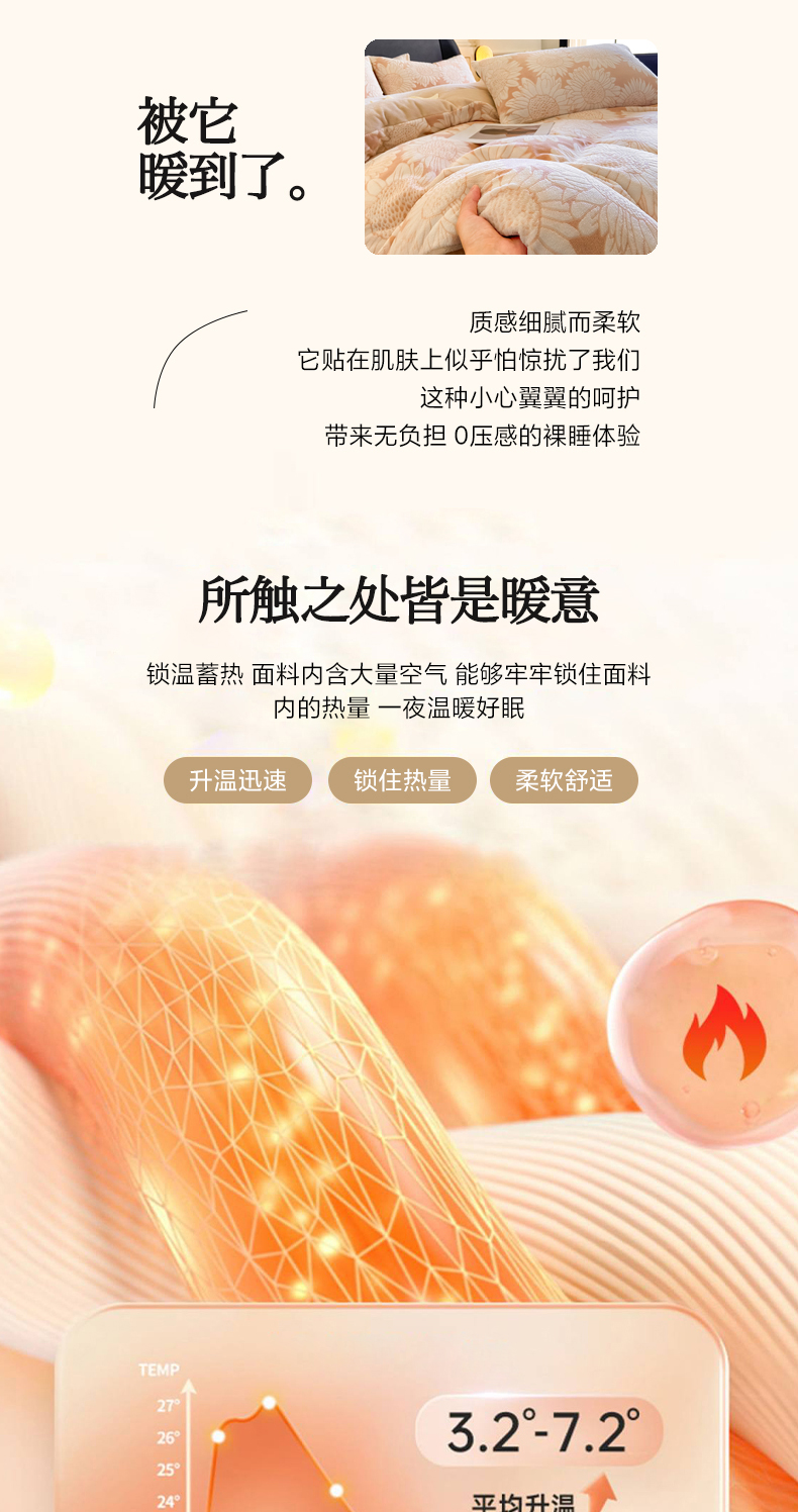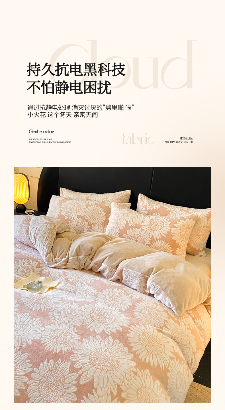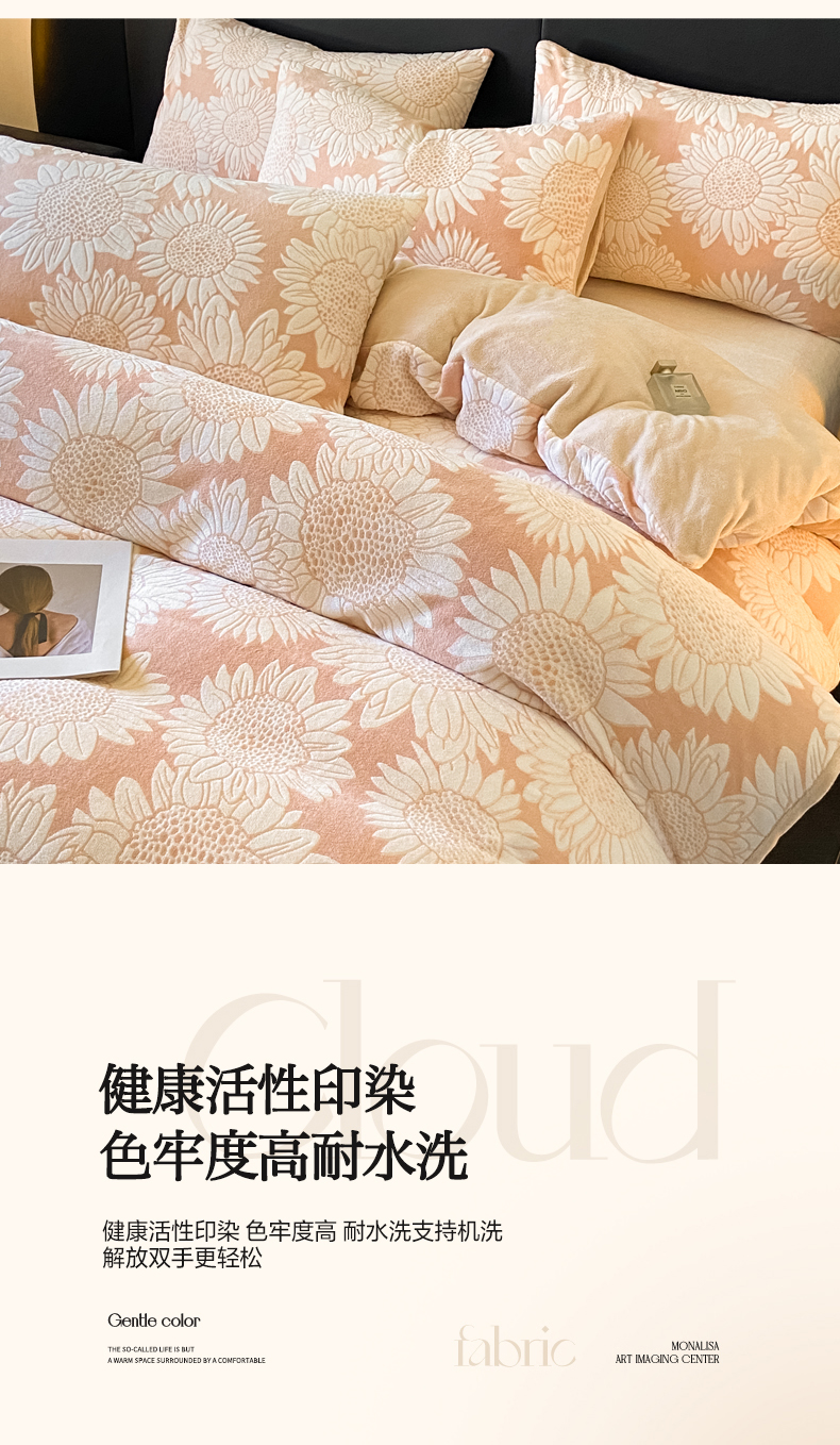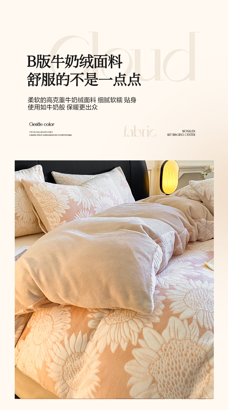 商品名称:2024新款立体浮雕保暖加厚牛奶绒四件套 漫夏桔