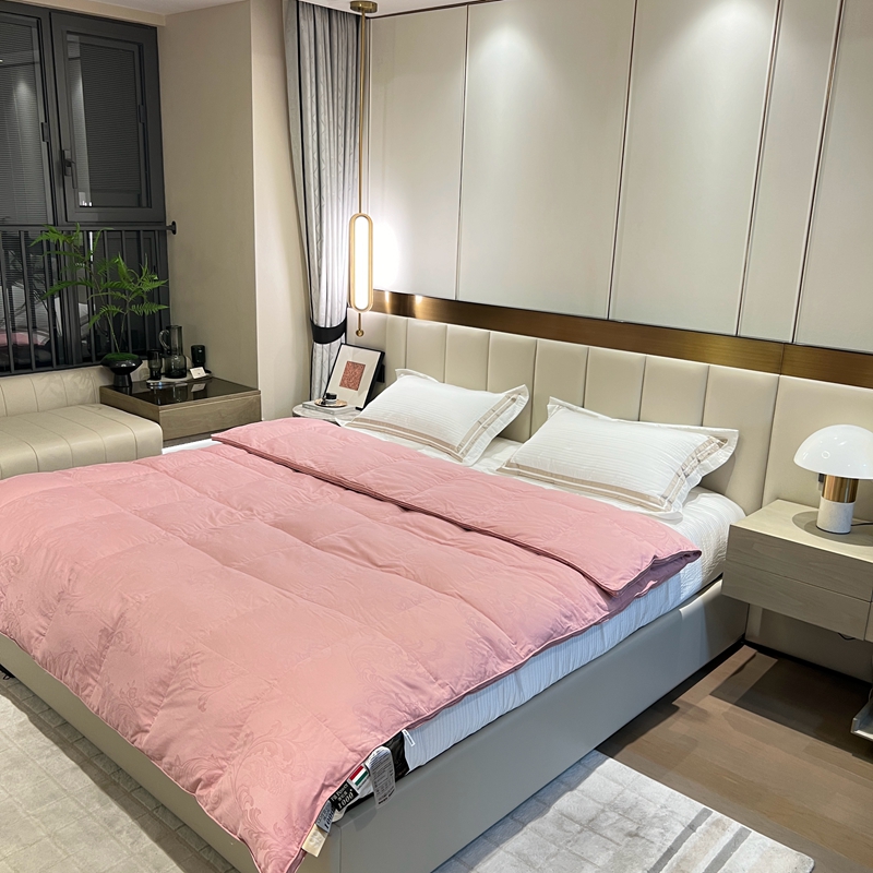 (总)静若居 2025新款高端提花羽绒被鸭绒被贡缎提花单层羽绒被壳,飘颜粉,飘金色,飘高级灰