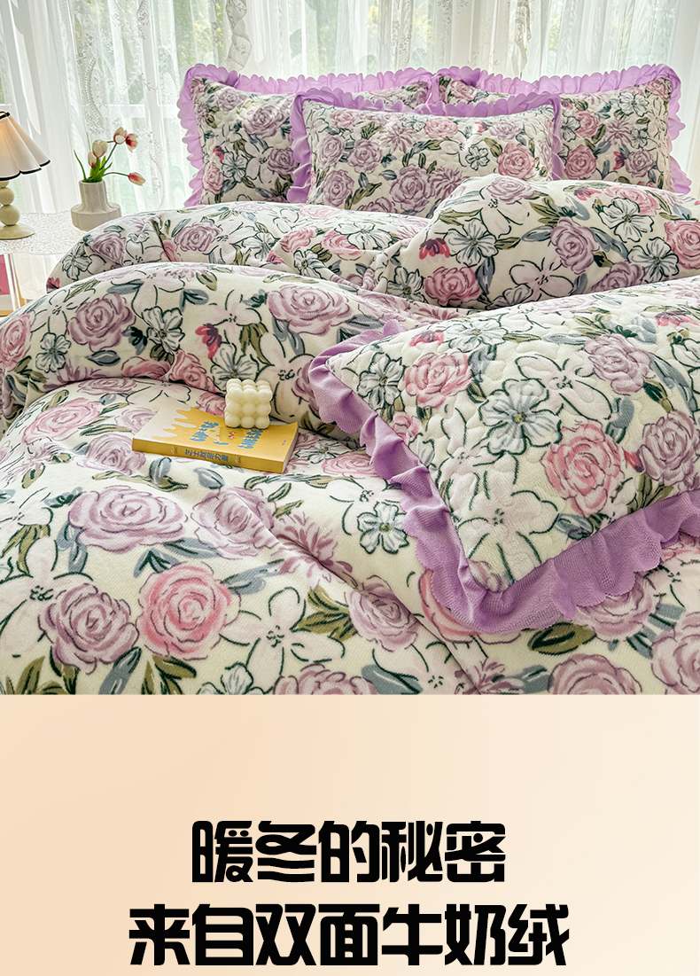 当前位置: 91家纺网 > 商品网购 > 床品套件 > 四件套 > 牛奶绒四件套 > 浩浩家纺 2024新款牛奶绒床盖四件套 玫瑰花园