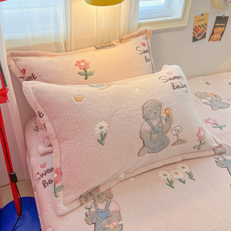 韩巢家纺 2025新款高克重印花牛奶绒床品四件套 田园小花,田园小花
