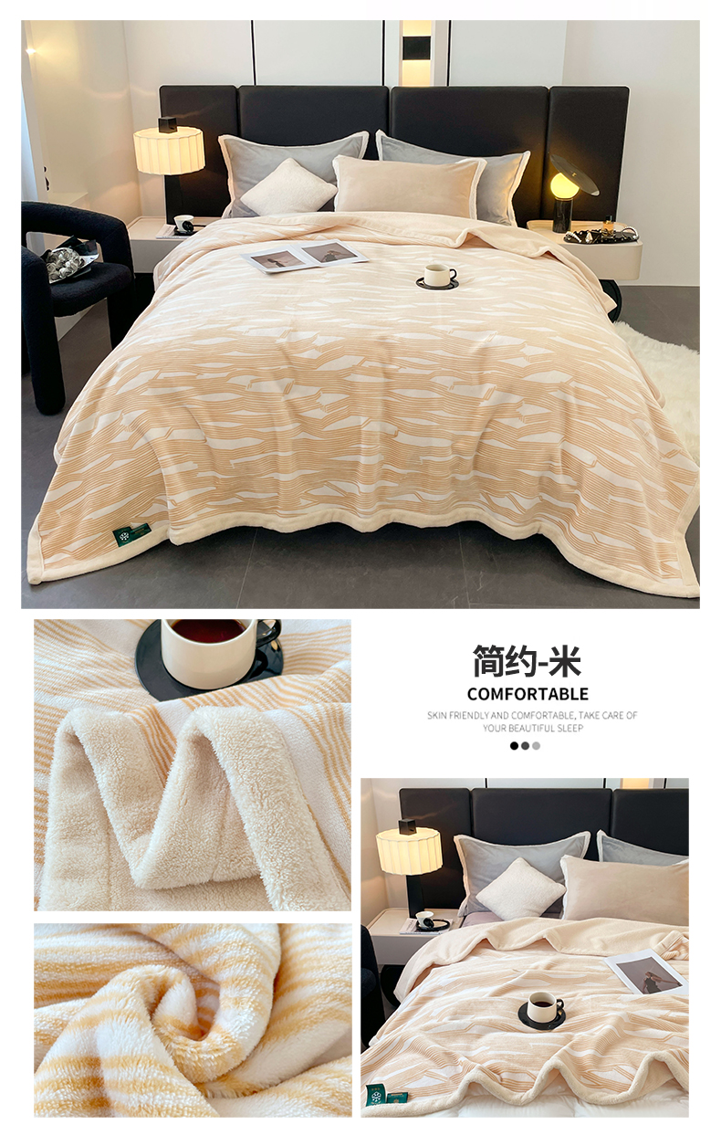 凯轩毛毛毯毯子网销专供 2024新款雪绒棉四季毛毯毯子盖毛毯毯子毛毯毯子子 简约-米
