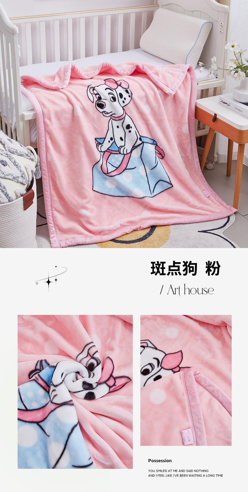 商品名称:凯轩毛毛毯毯子网销专供 2024新款加厚保暖儿童印花云毛毯毯子系列 斑点狗 粉