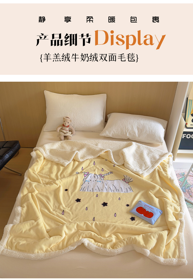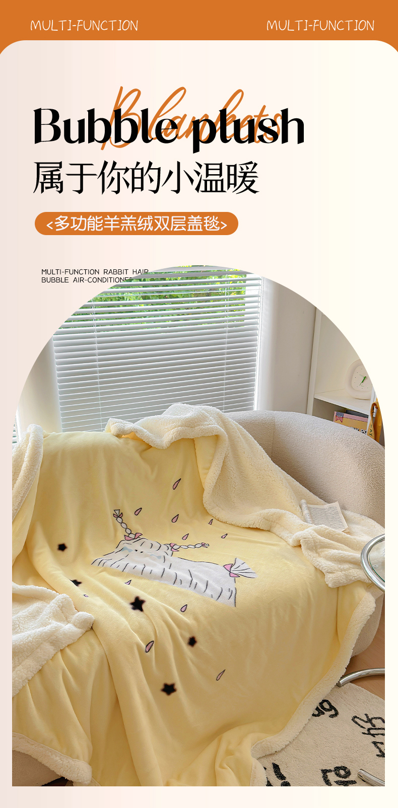 山茶家纺 2024新款多功能羊羔绒双层大版牛奶绒盖毯 盖毯-辫子狗狗