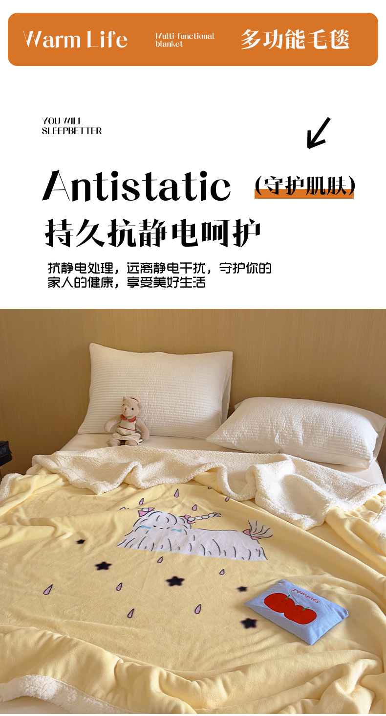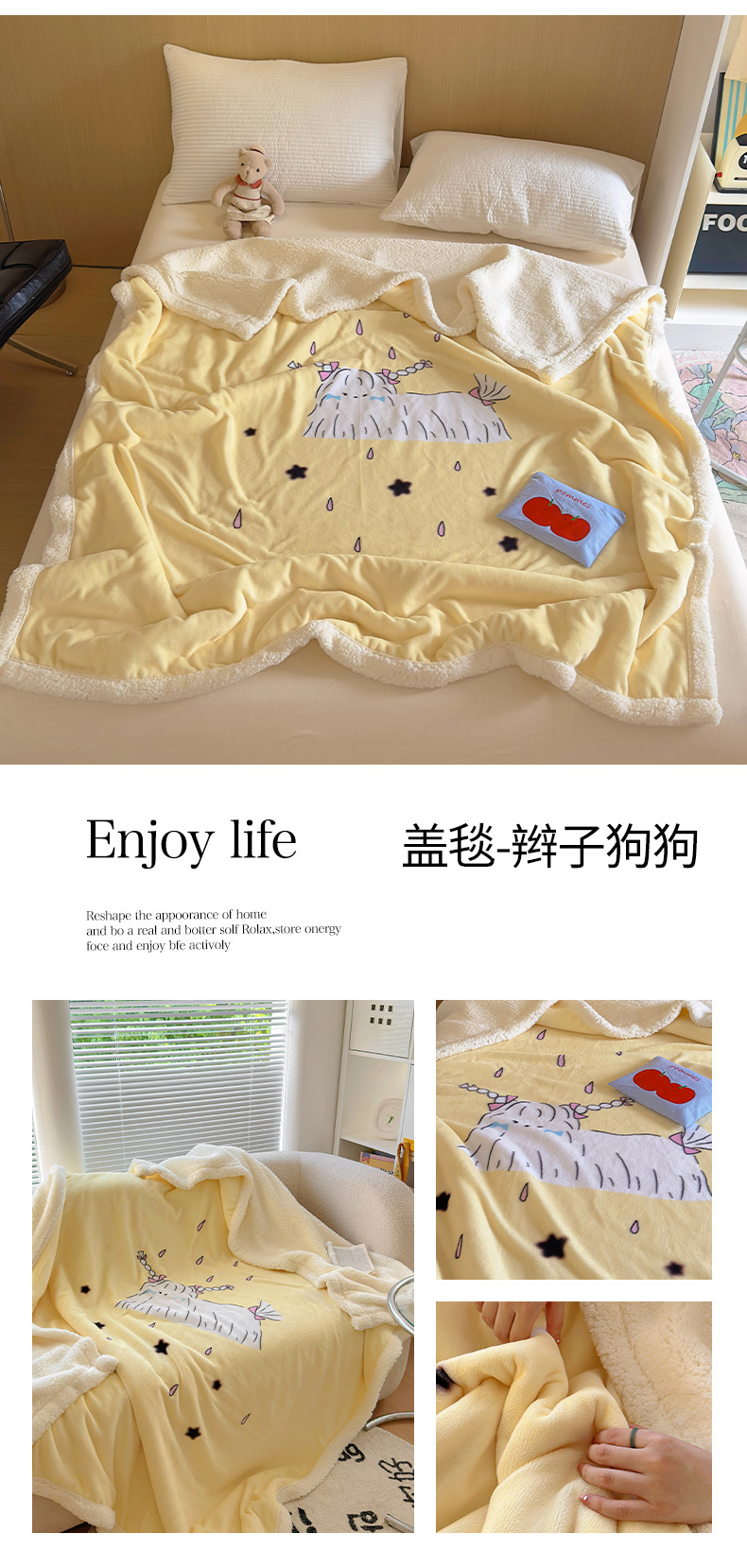 商品名称:山茶家纺 2024新款多功能羊羔绒双层大版牛奶绒盖毯 盖毯-辫子狗狗