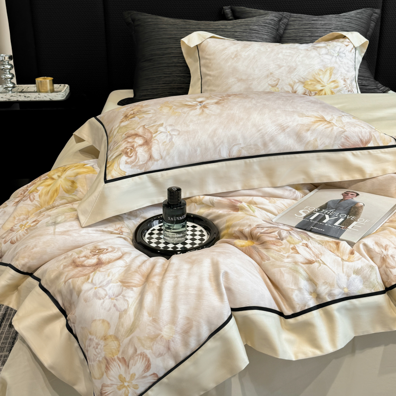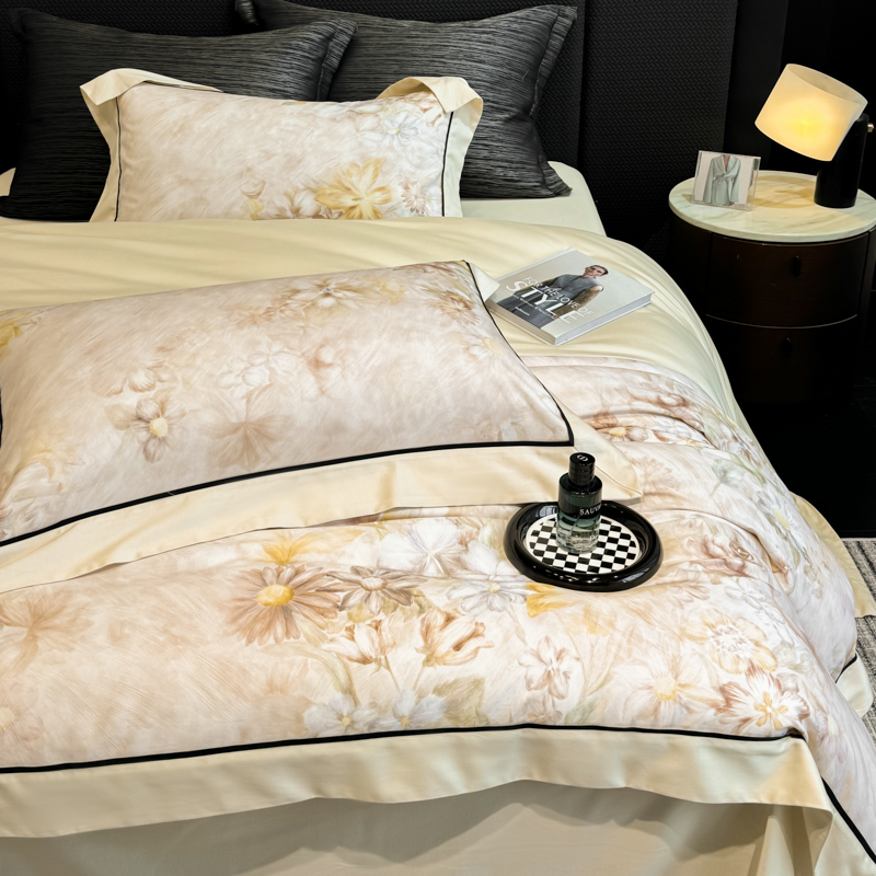 商品名称:若未家居 LOVEWE HOUSE 2025新款秋冬50支轻磨毛天丝磨毛数码印花四件套-可颂 可颂-浅香槟