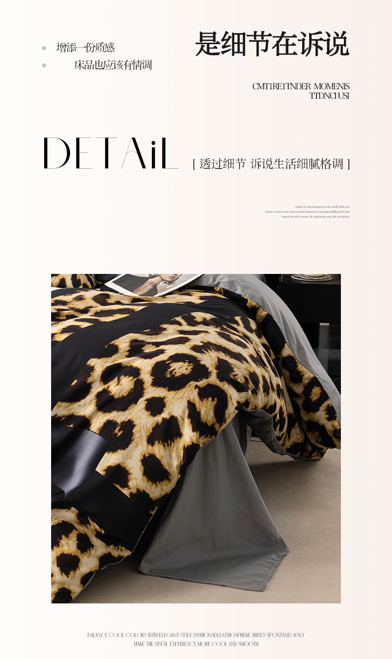 商品名称:色鬼布艺 2024新款网红轻奢大版斜纹全棉数码印花四件套 豹纹香