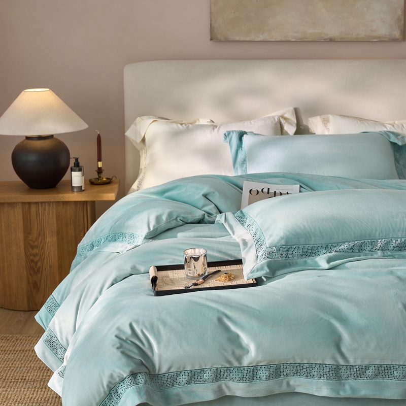 时亿家居 2024新款300g婴肤绒四件套-爵士系列 爵士 豆绿