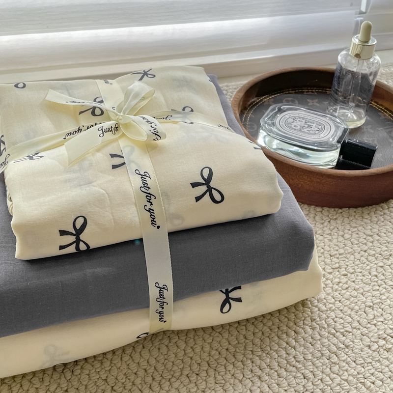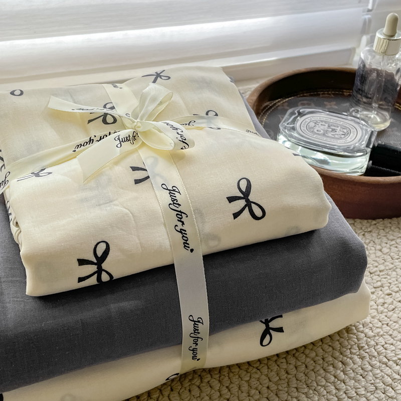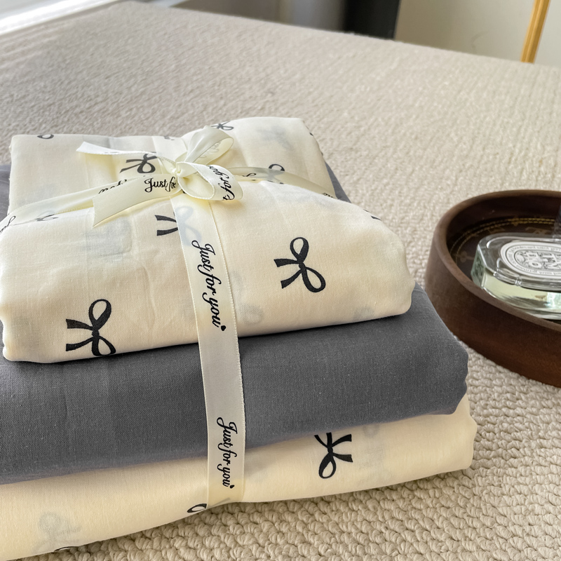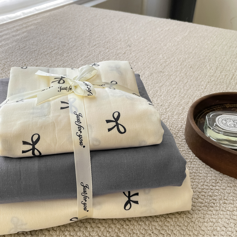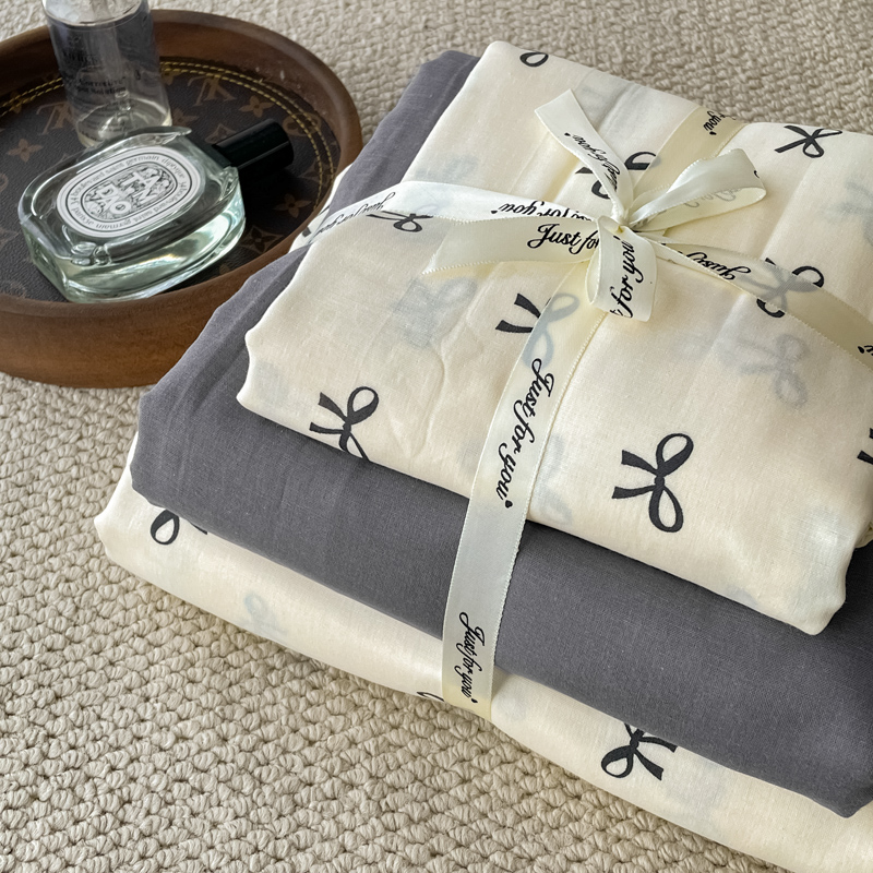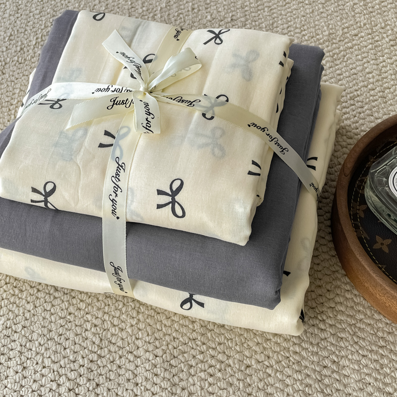 一比一家纺 2024新款全棉母婴级抗菌有氧全棉双层纱亲肤全棉小清新印花三件套四件套 蝴蝶可颂-黑