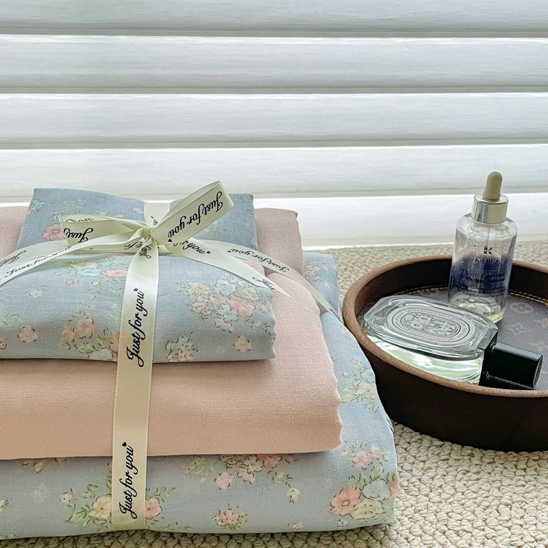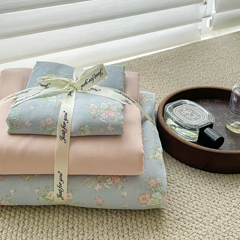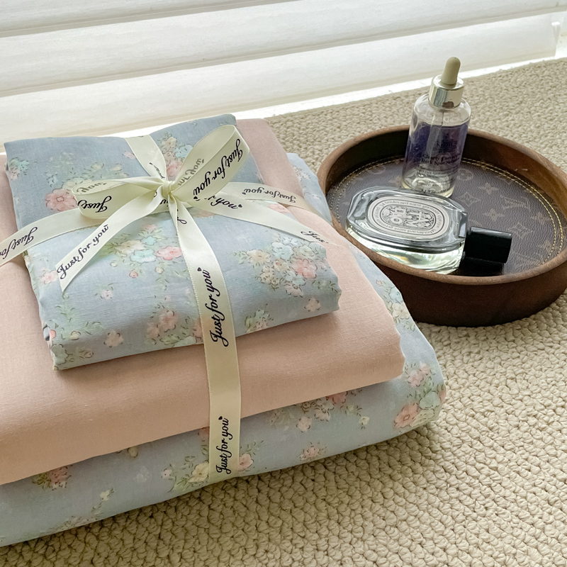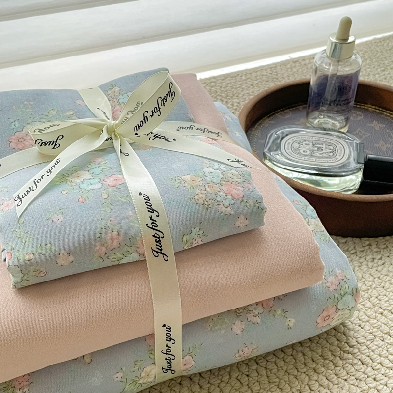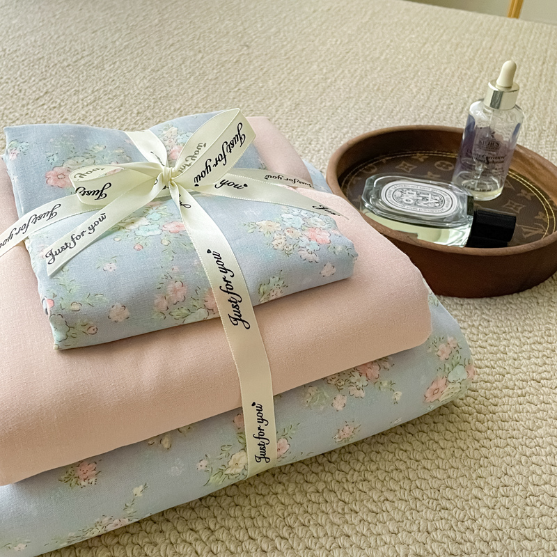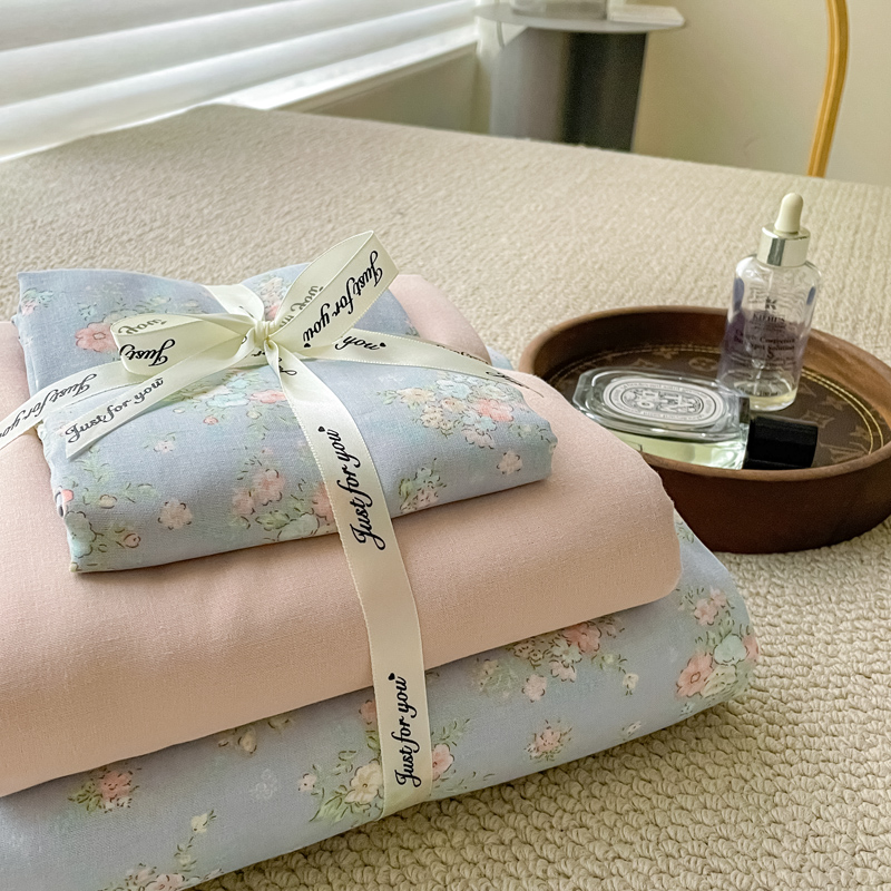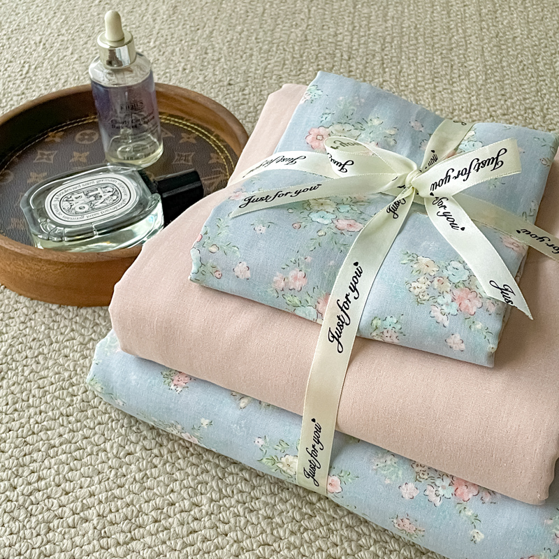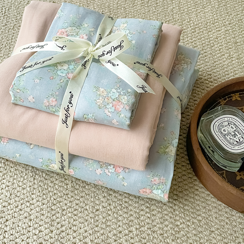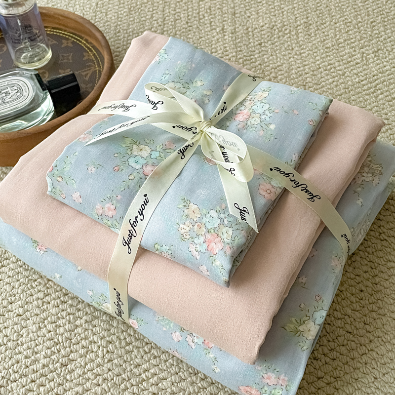 一比一家纺 2025新款全棉母婴级抗菌有氧全棉双层纱亲肤全棉小清新印花三件套四件套 小苍兰