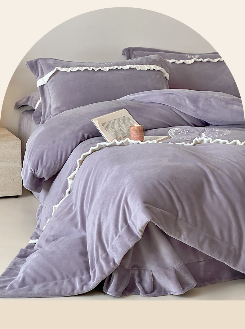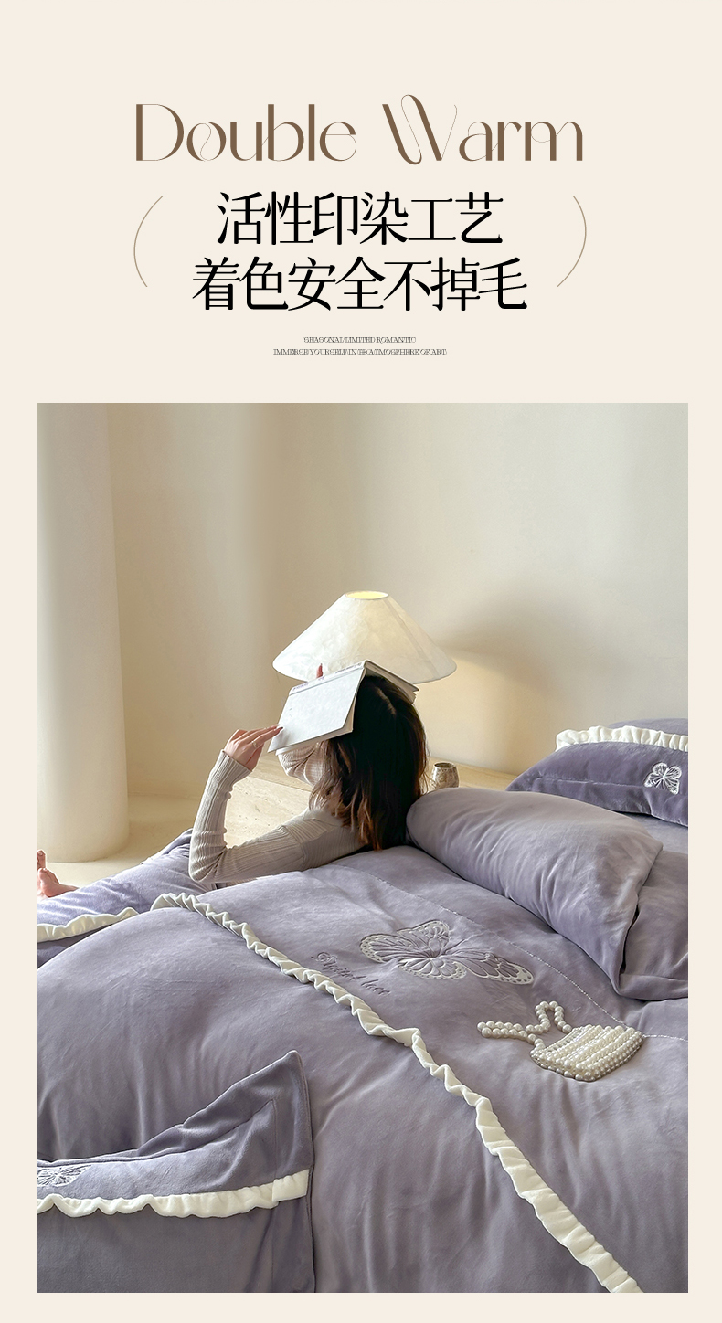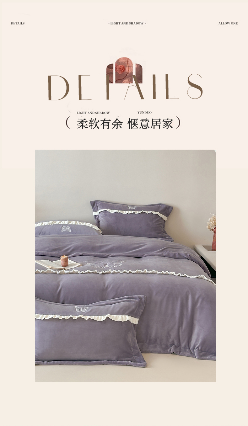 商品名称:2024新款牛奶绒刺绣花边四件套-蝶音 梦紫灰