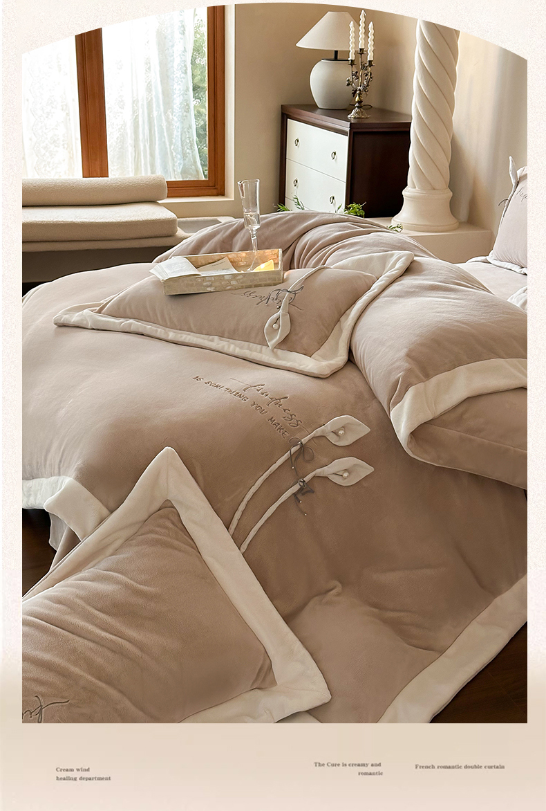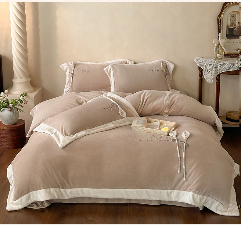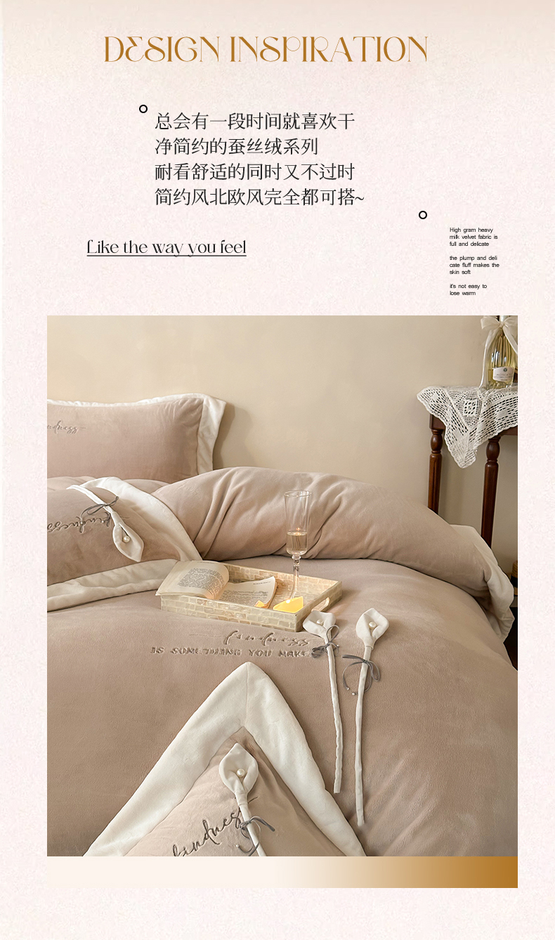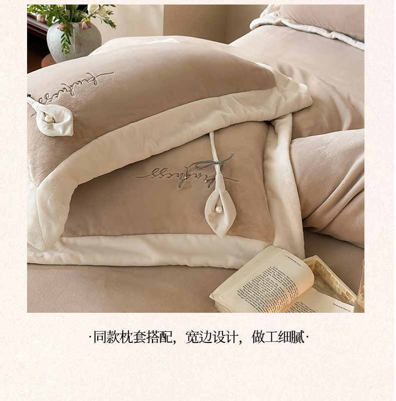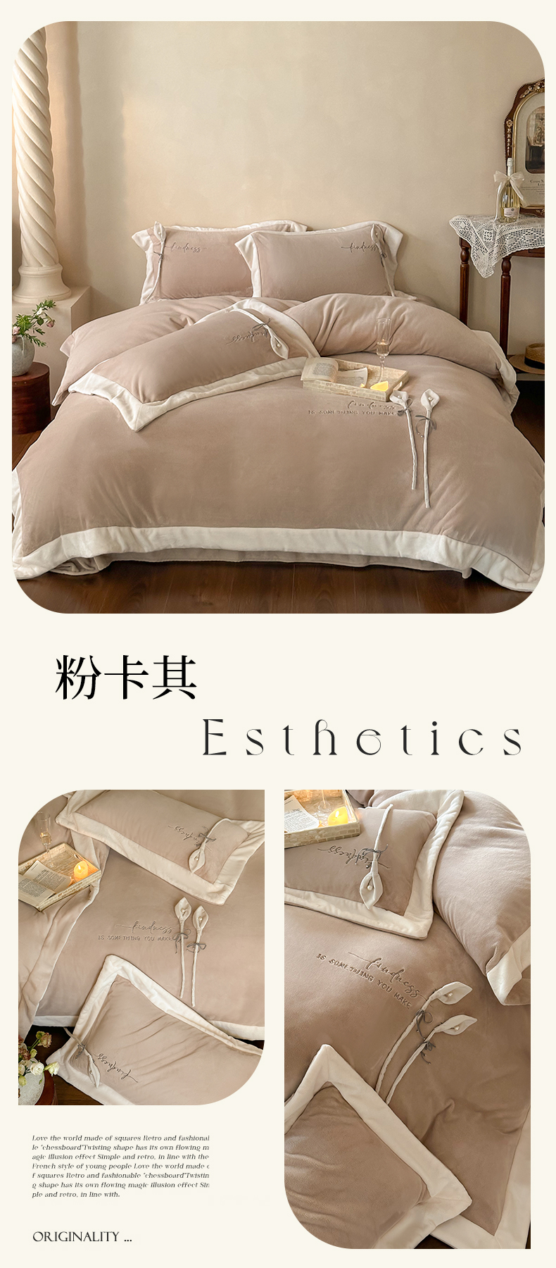 2024新款高克重牛奶绒四件套-辛西娅 粉卡其
