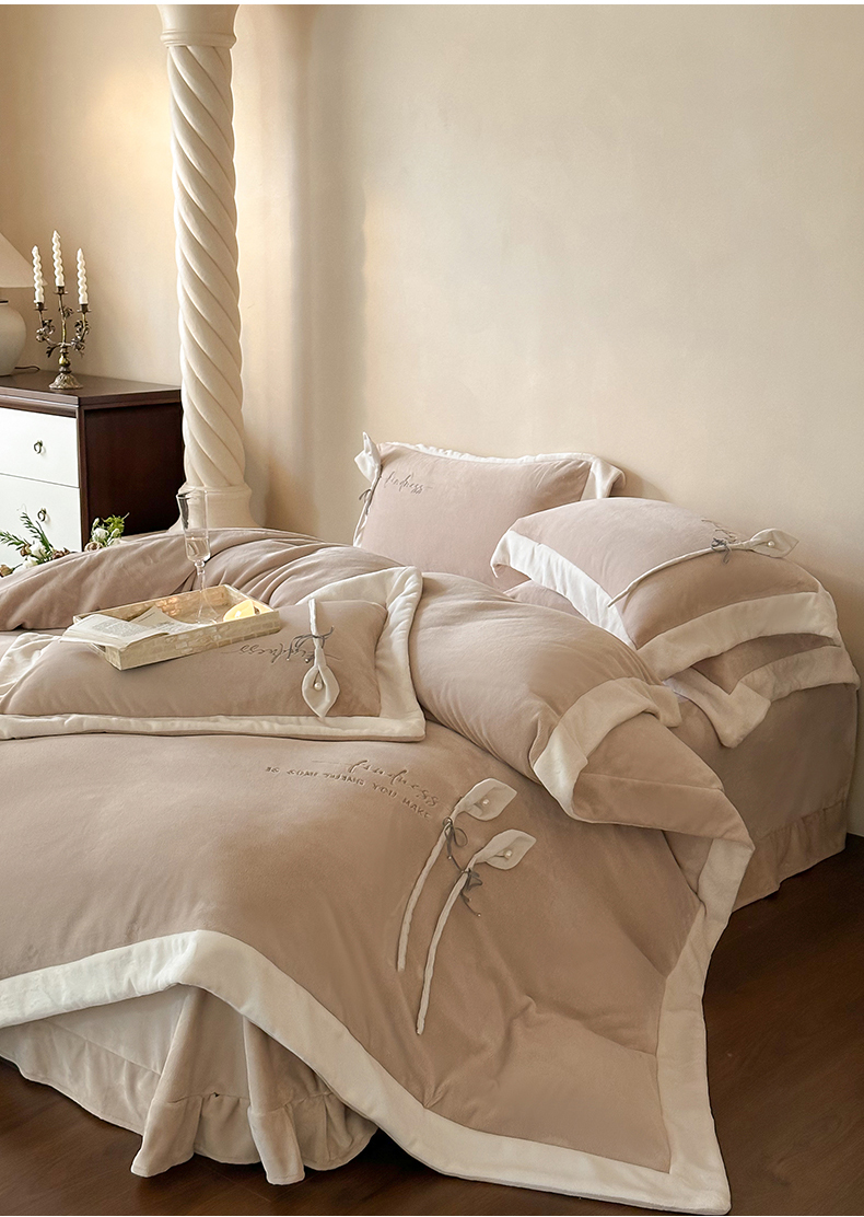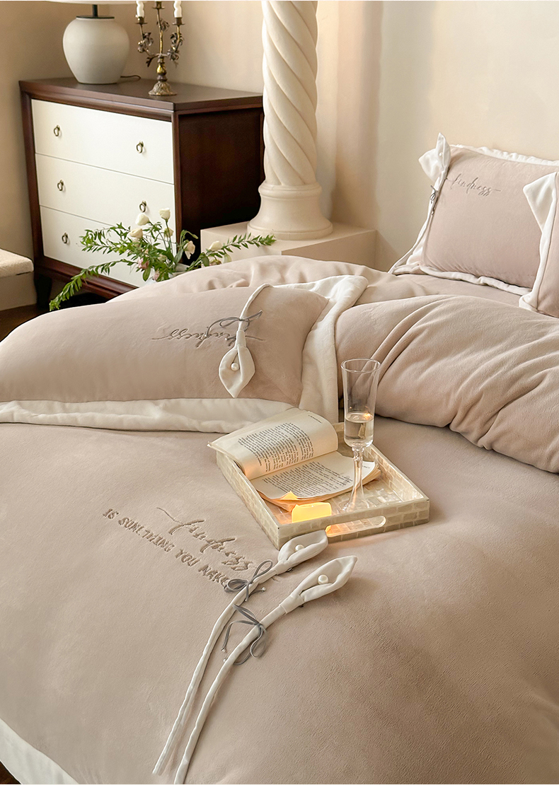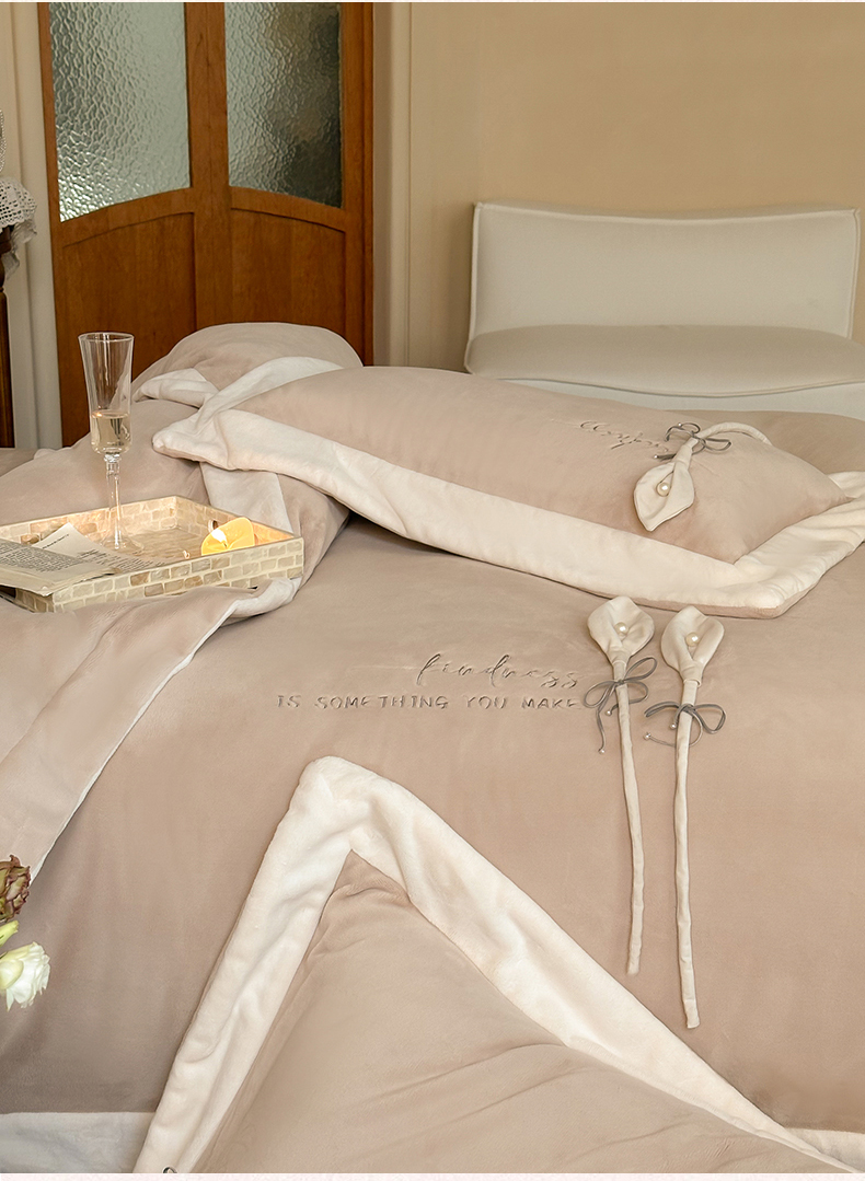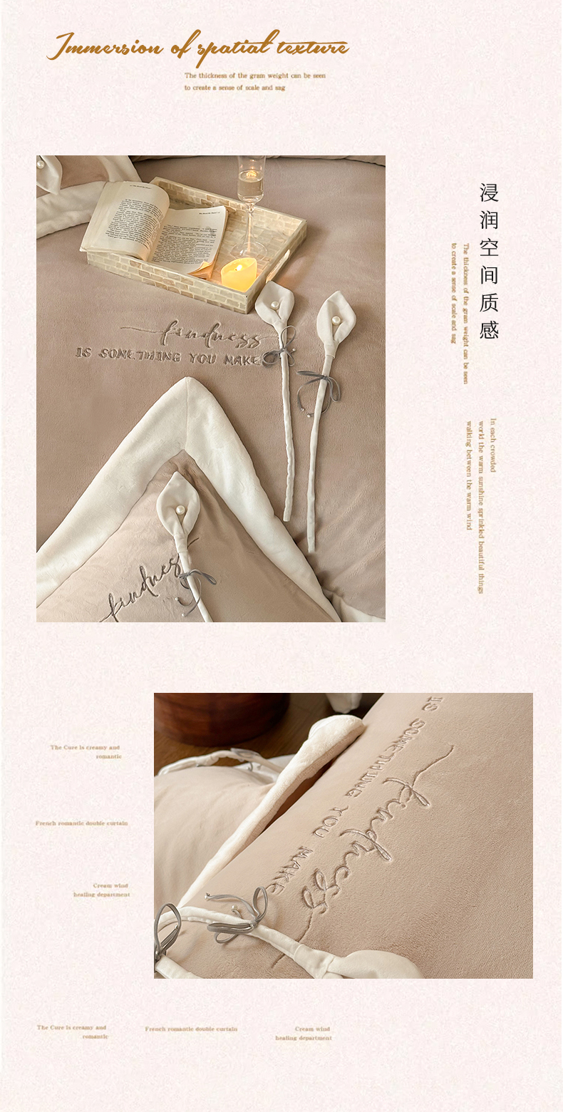 2024新款高克重牛奶绒四件套-辛西娅 粉卡其