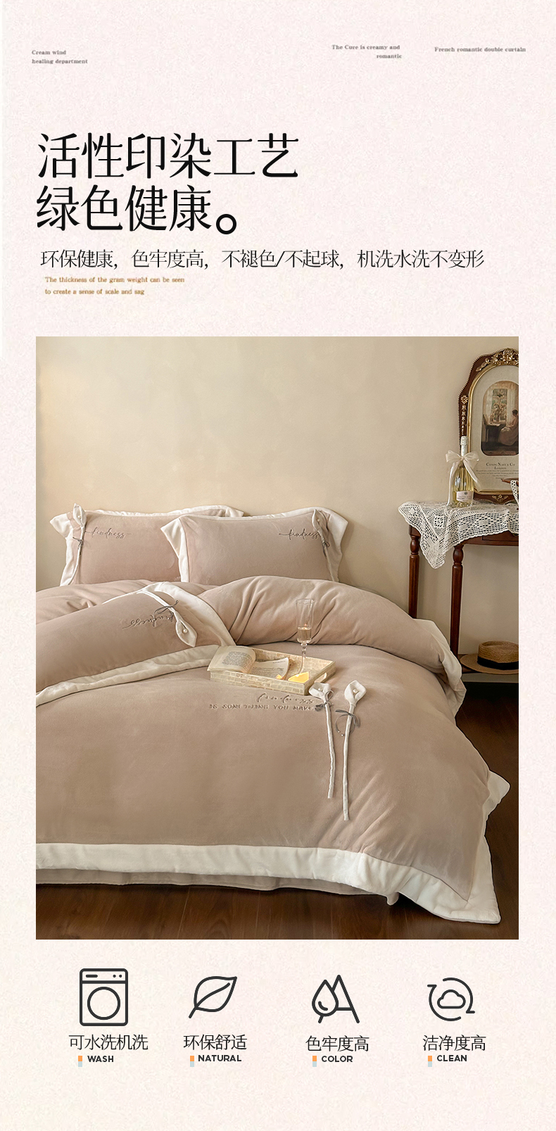 商品名称:2024新款高克重牛奶绒四件套-辛西娅 粉卡其