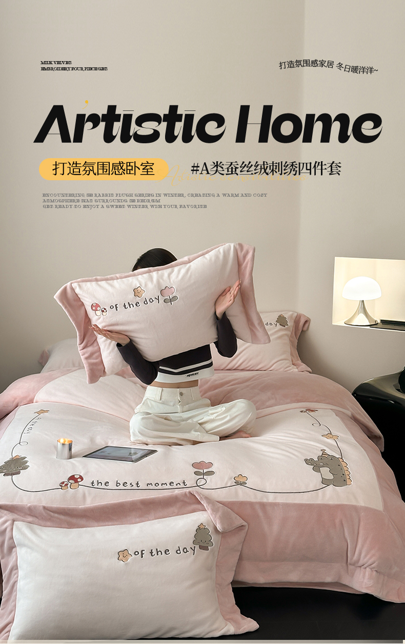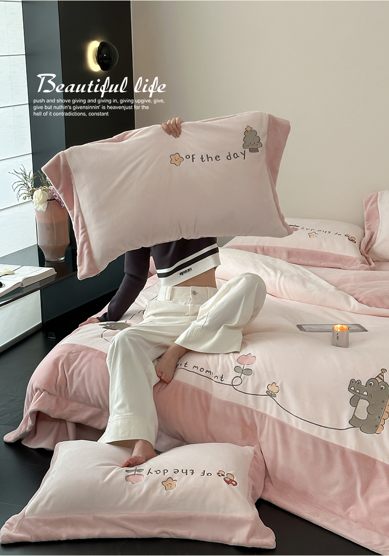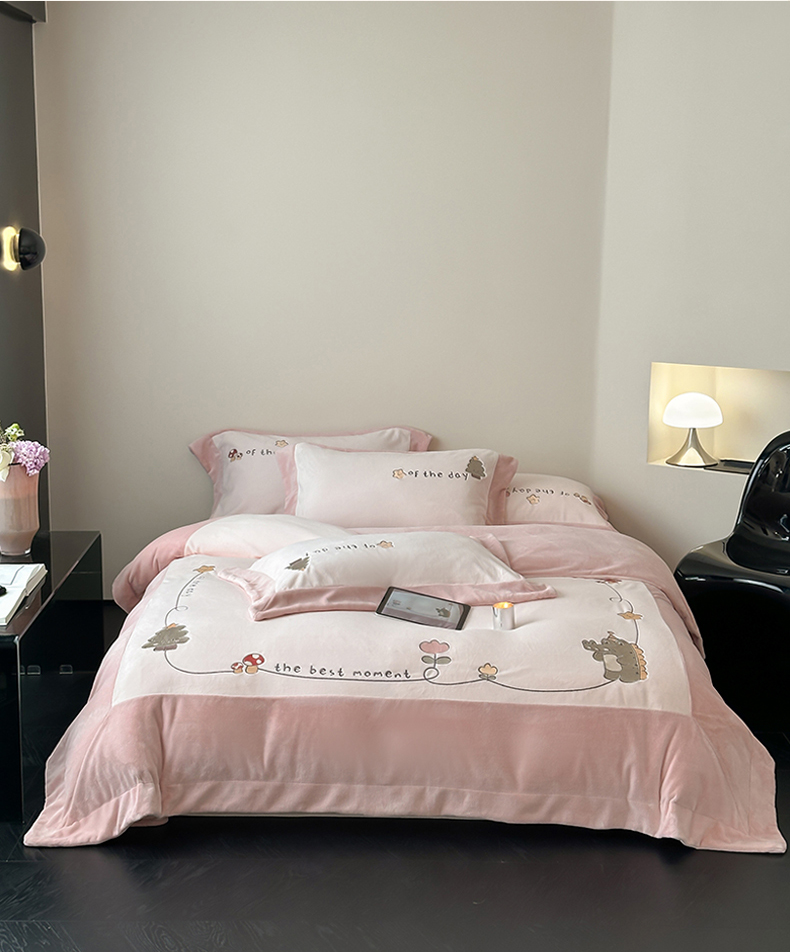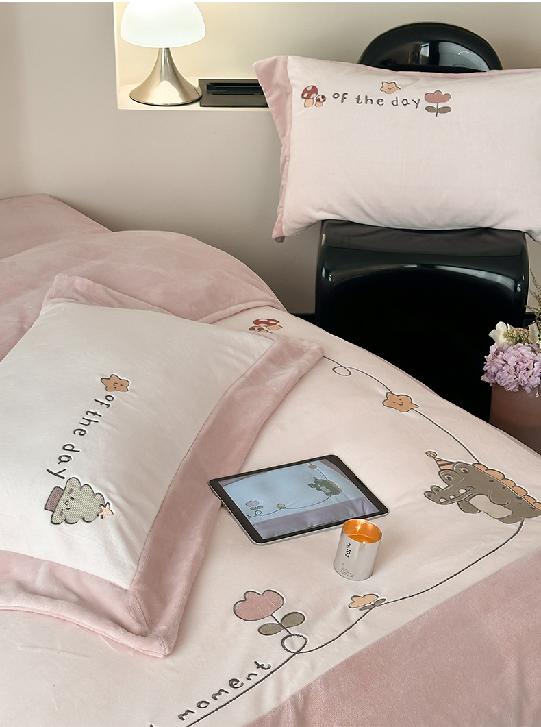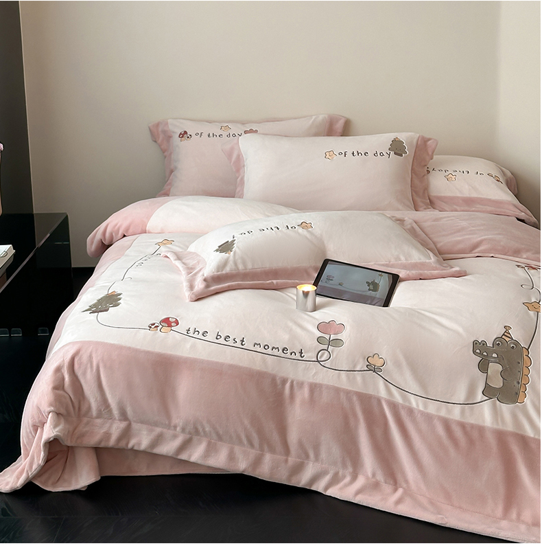 2024新款高克重牛奶绒刺绣四件套-萌龙园 萌龙园-牛奶粉