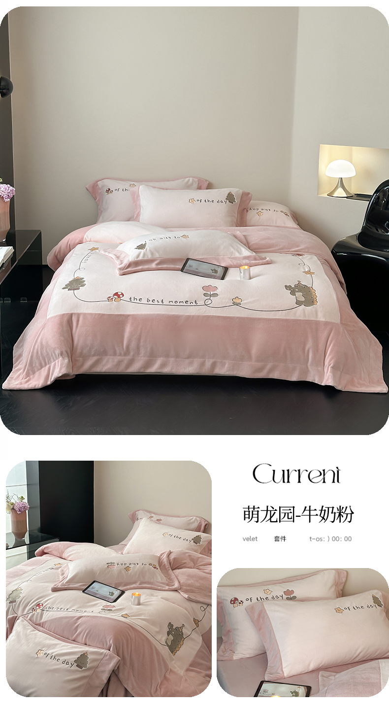 商品名称:2024新款高克重牛奶绒刺绣四件套-萌龙园 萌龙园-牛奶粉