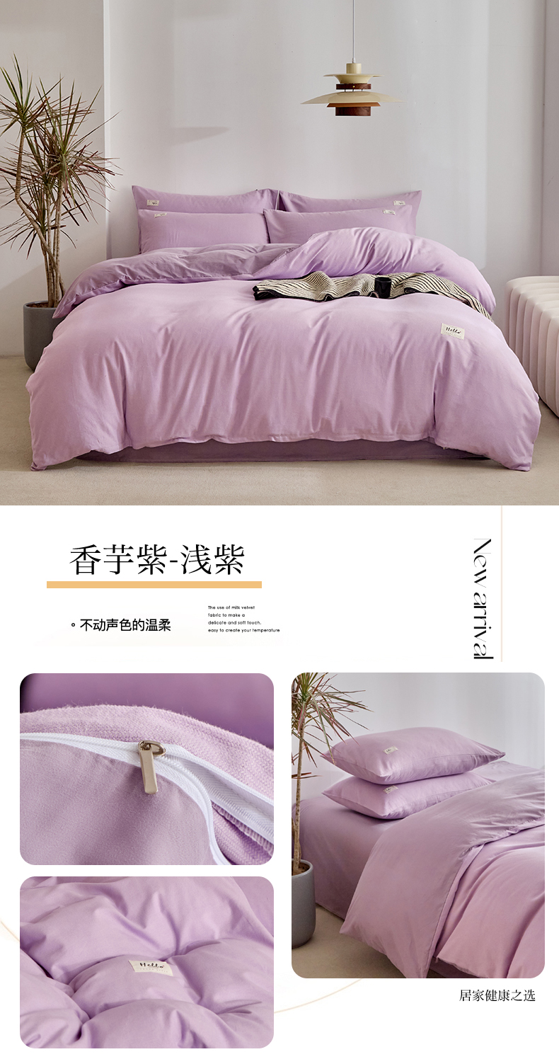 当前位置: 91家纺网 > 商品网购 > 床品套件 > 四件套 > 全棉普通四件套 > 铭宣家居 2024新款双拼全棉色织磨毛四件套 香芋紫-浅紫
