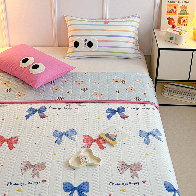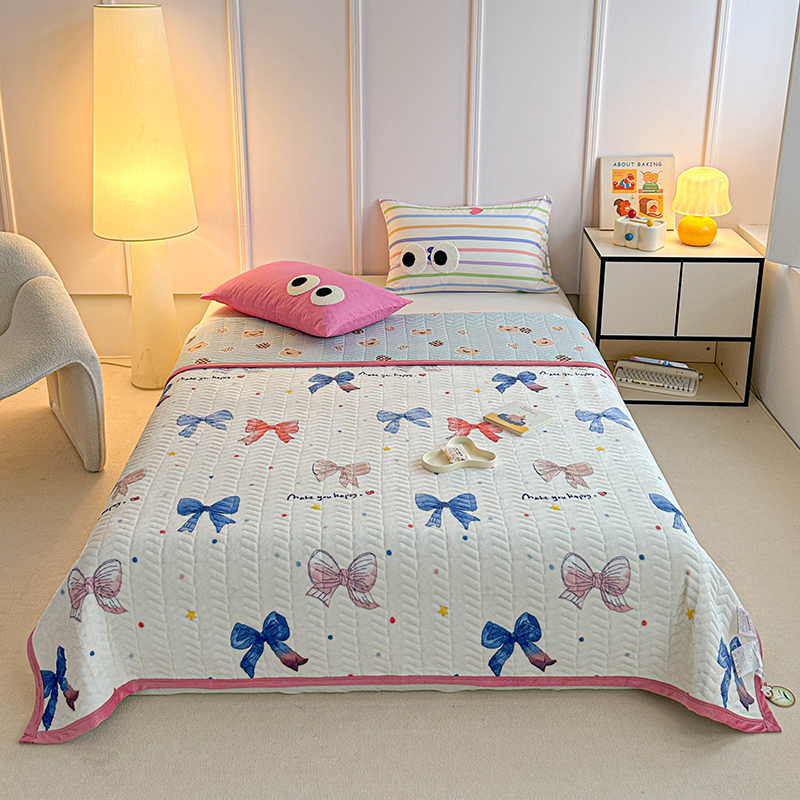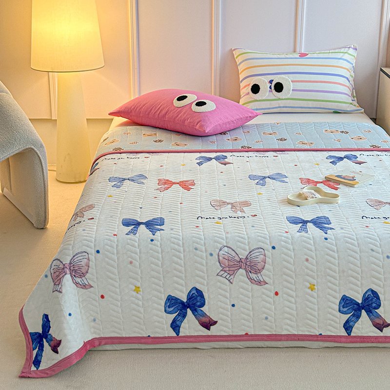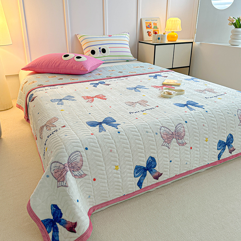 源舜家纺 2025新款小清新印花牛奶绒床盖多用途盖毯系列 彩色蝴蝶结