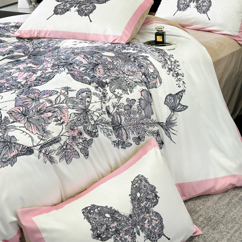 商品名称:色鬼布艺 2024新款舒适宝宝绒数码印花四件套 蝴蝶-粉