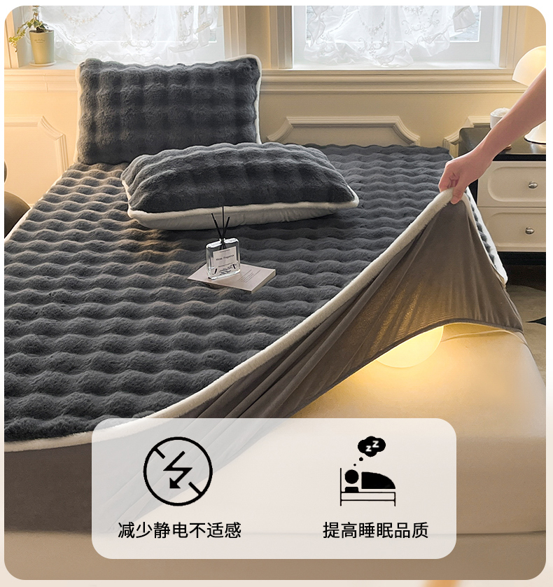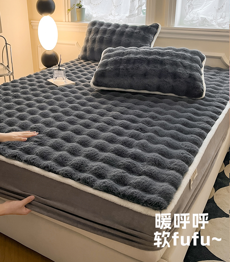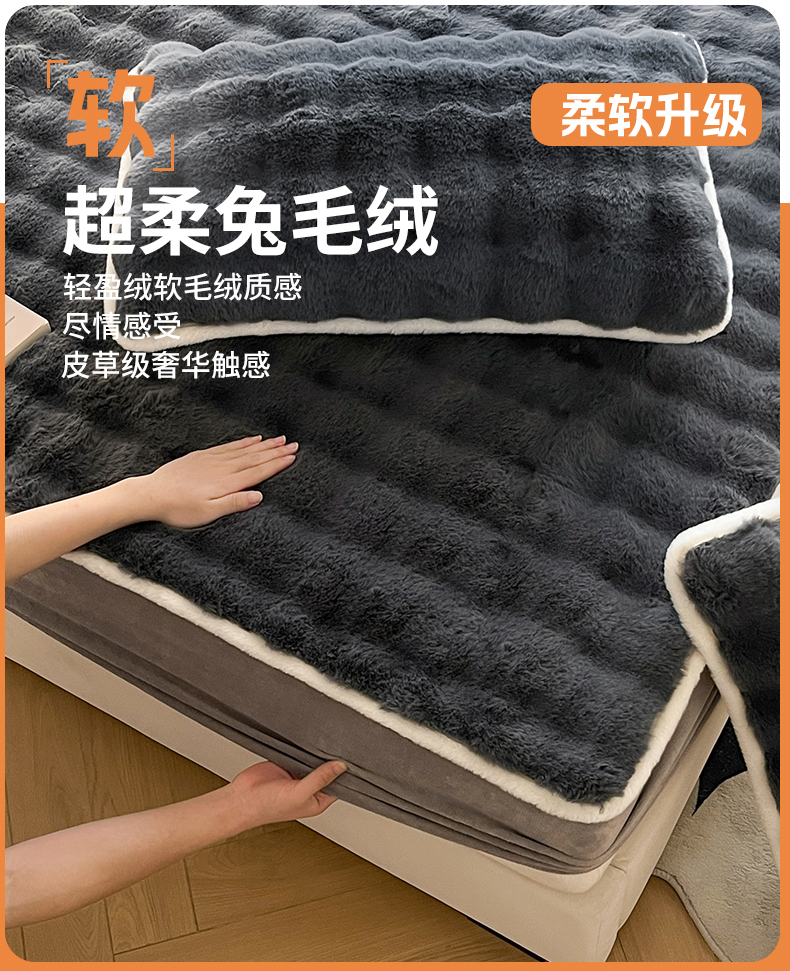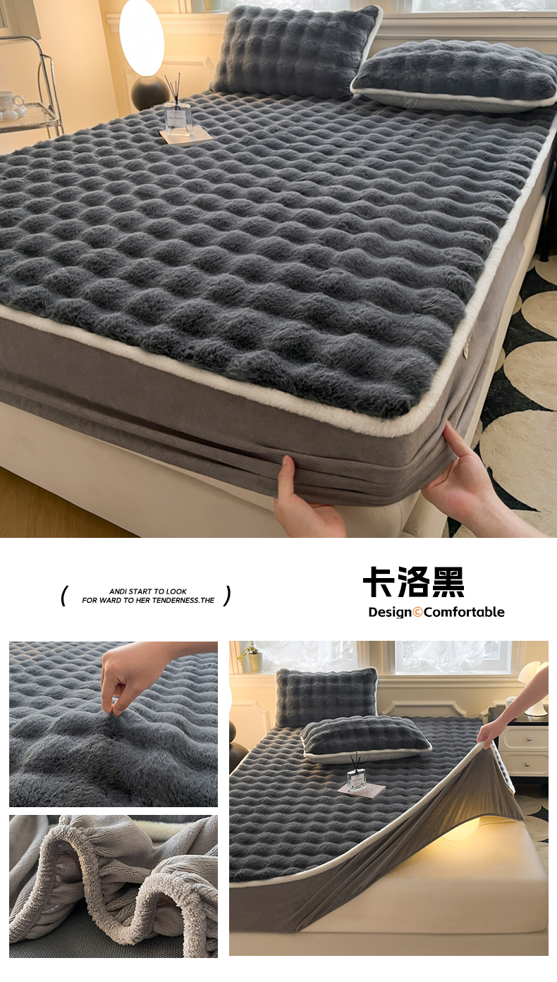 • 91家纺网 家纺一手货源 找家纺 鑫钰 2024秋冬新款高克重500克兔毛绒床笠 卡洛黑