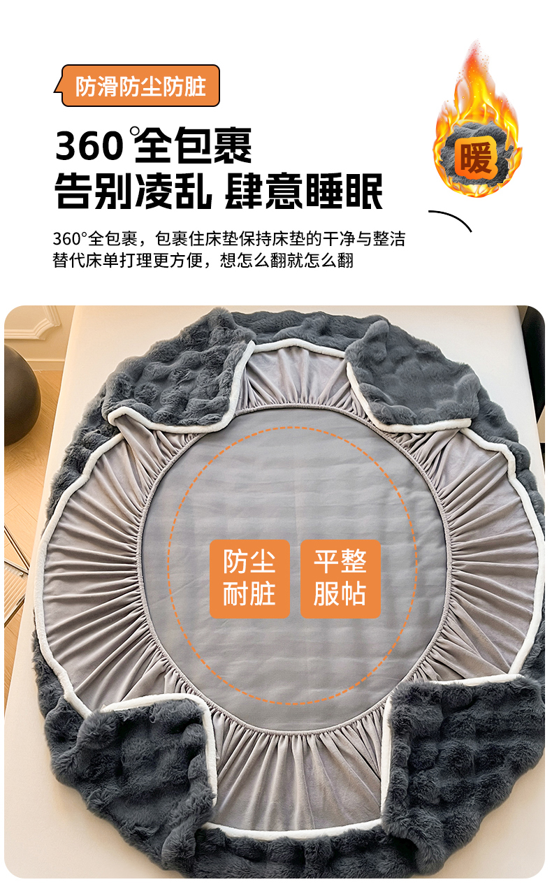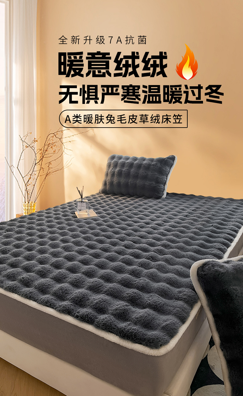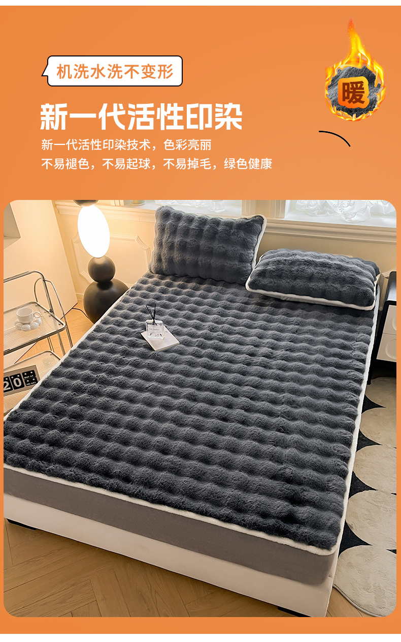 • 91家纺网 家纺一手货源 找家纺 鑫钰 2024秋冬新款高克重500克兔毛绒床笠 卡洛黑
